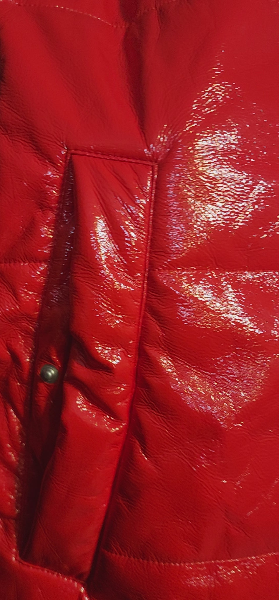 Fashion Nova men red Liquid vest. Velcro sides and top. This vest is a size large fitting a size large-1x woman. Has front pockets. There is a glare in the photos ( that is not a spot)