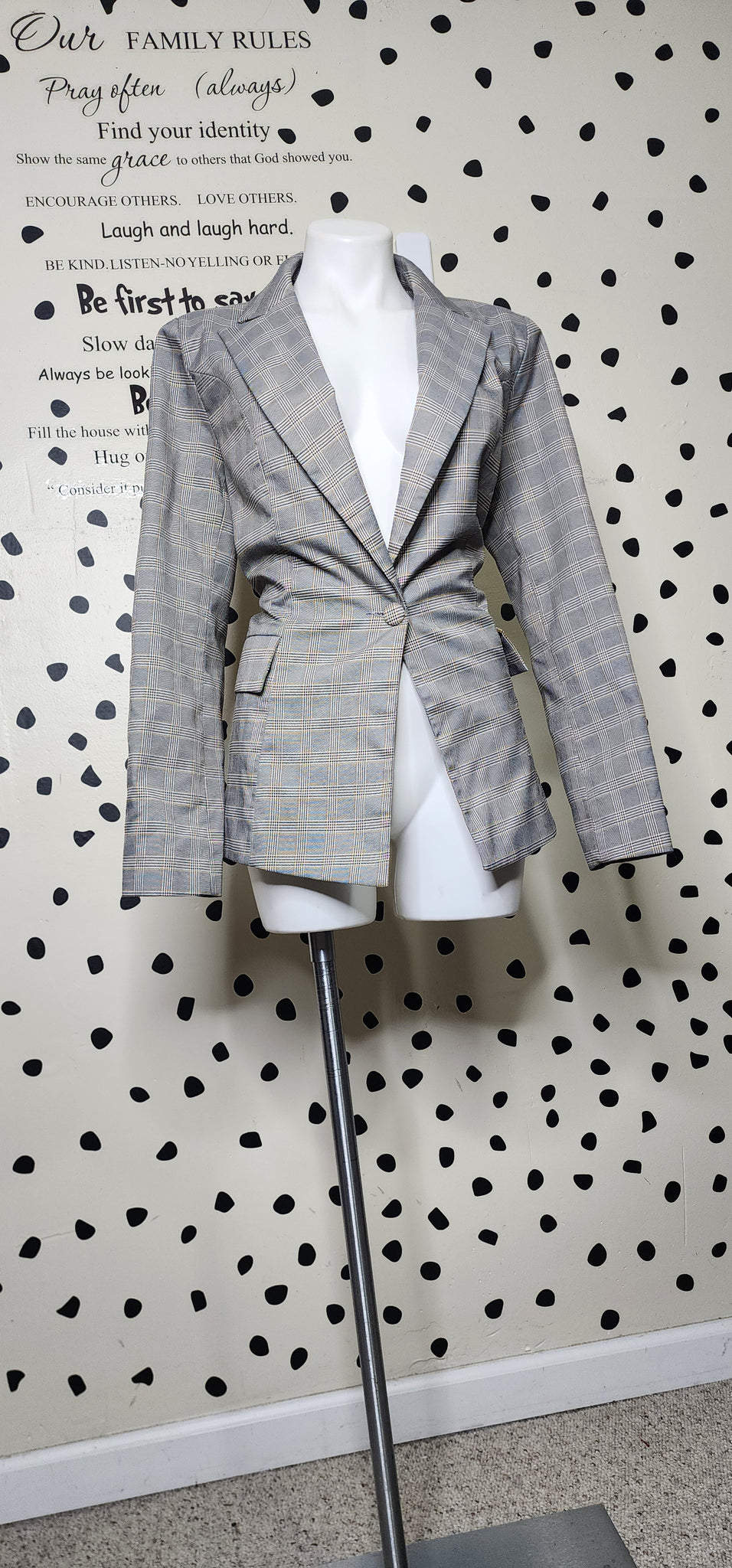CHECKER PRINT 1 BUTTON BLAZER SZ LARGE (10)