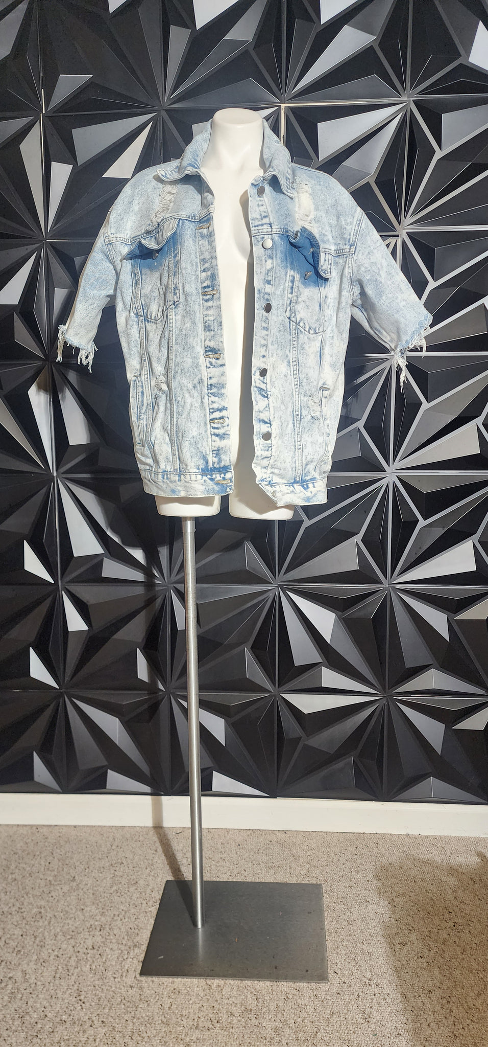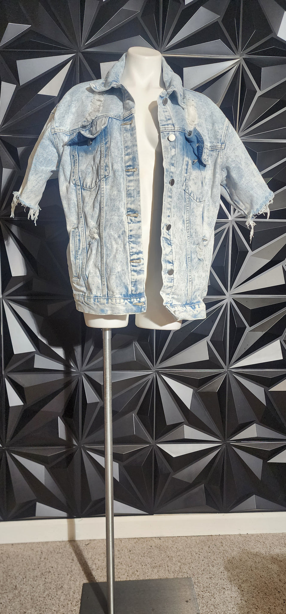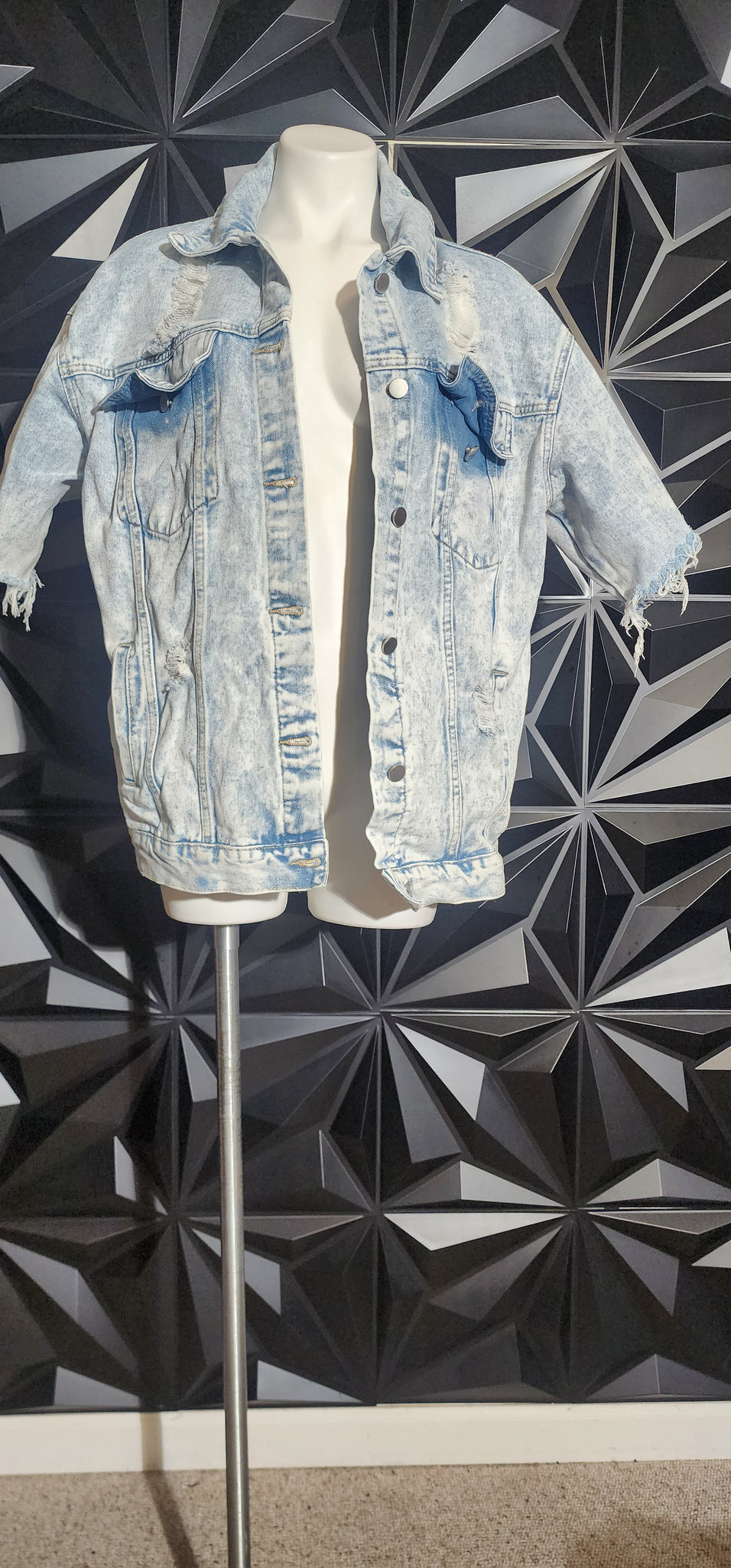 Denim short sleeve distress jacket. Untagged, best fitting size med/lrg (up to sz 12)