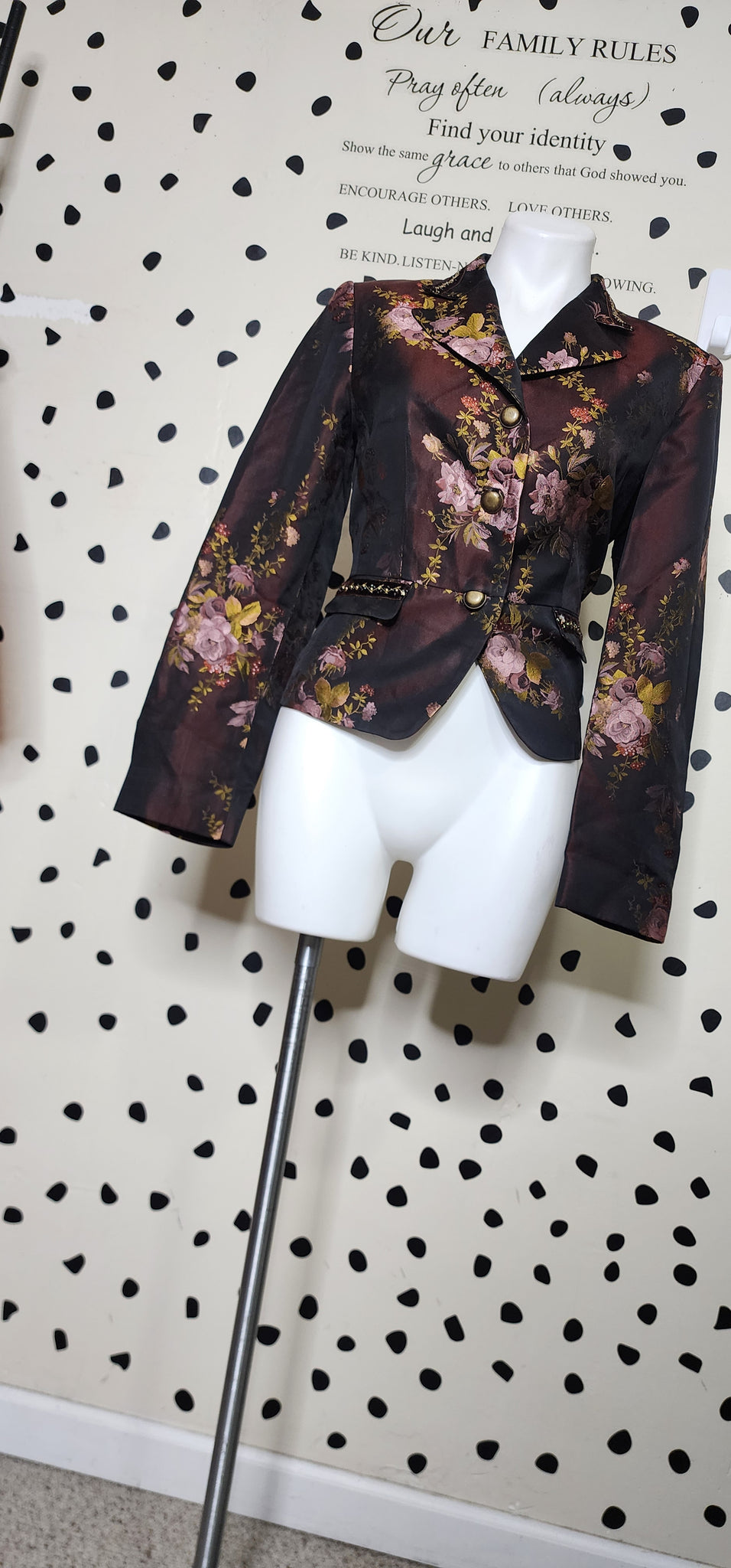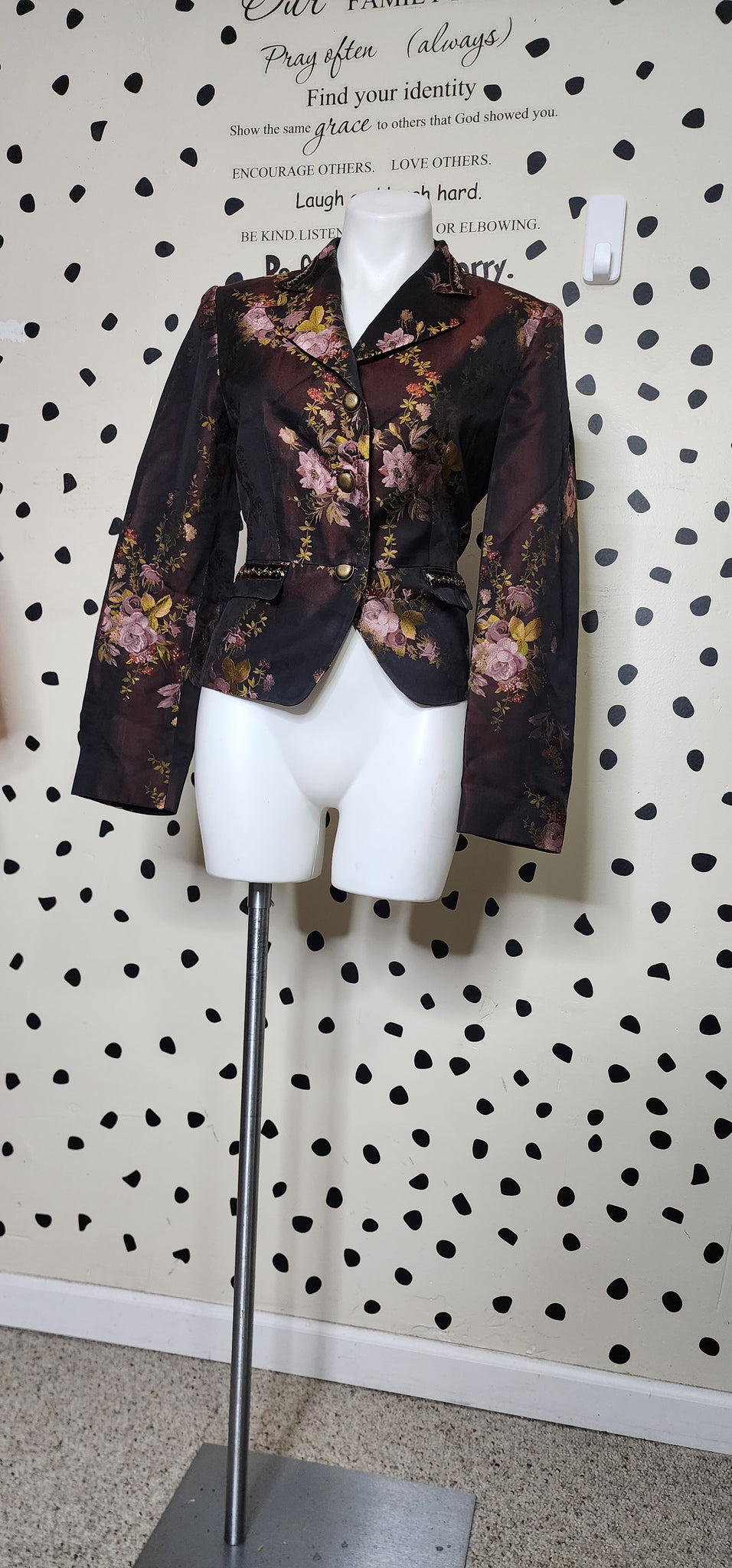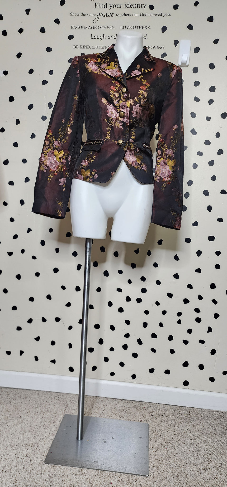 LOUBEN FLORAL PRINT BLAZER. BUTTON DOWN THE FRONT. THIS BLAZER IS A SIZE 10