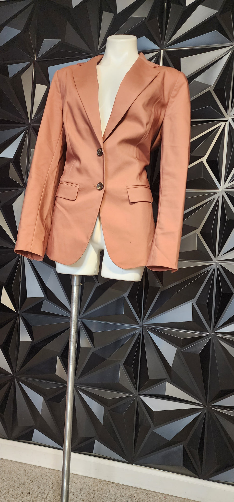 A NEW DAY BROWN BLAZER. 1 BUTTON CLOSURE. SIZE 14