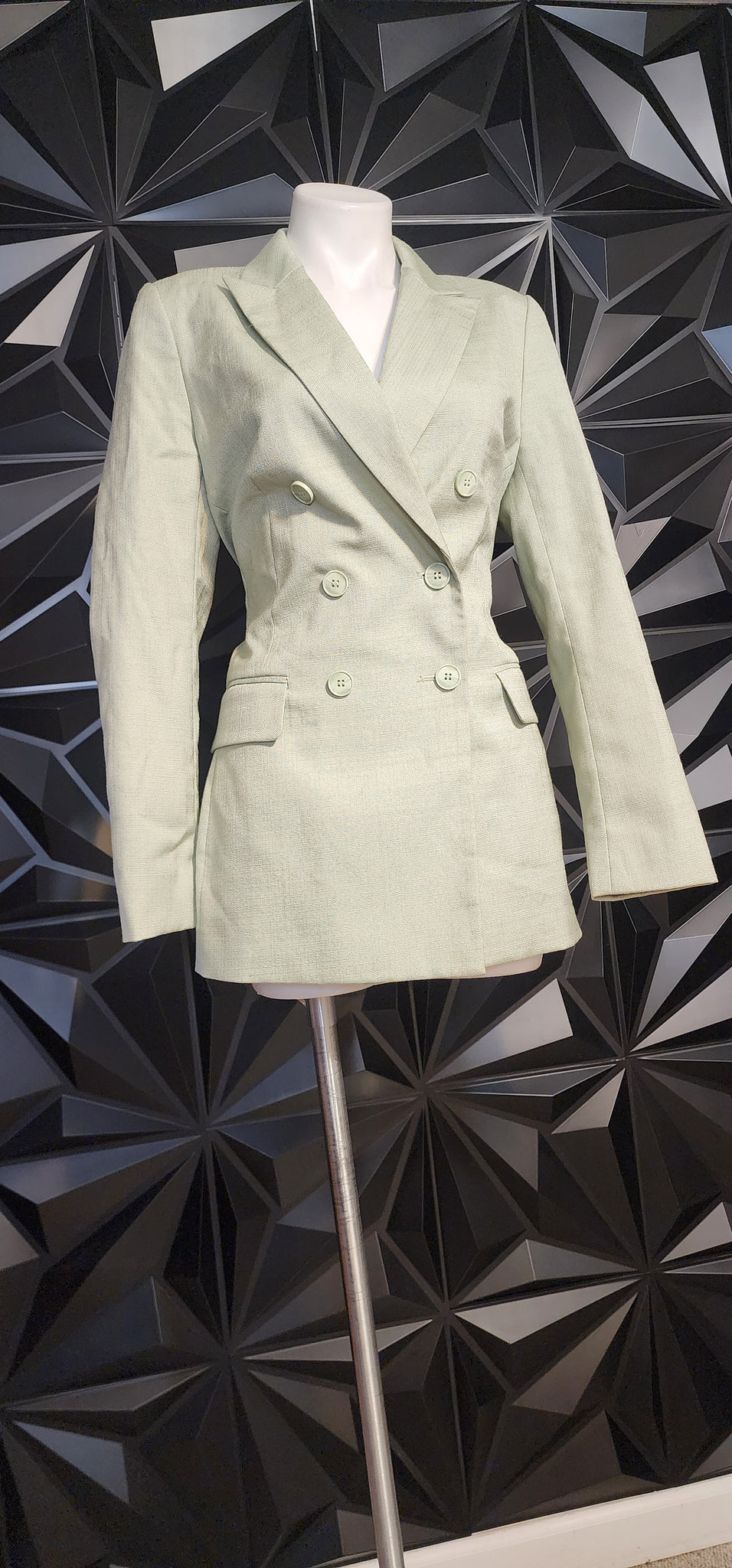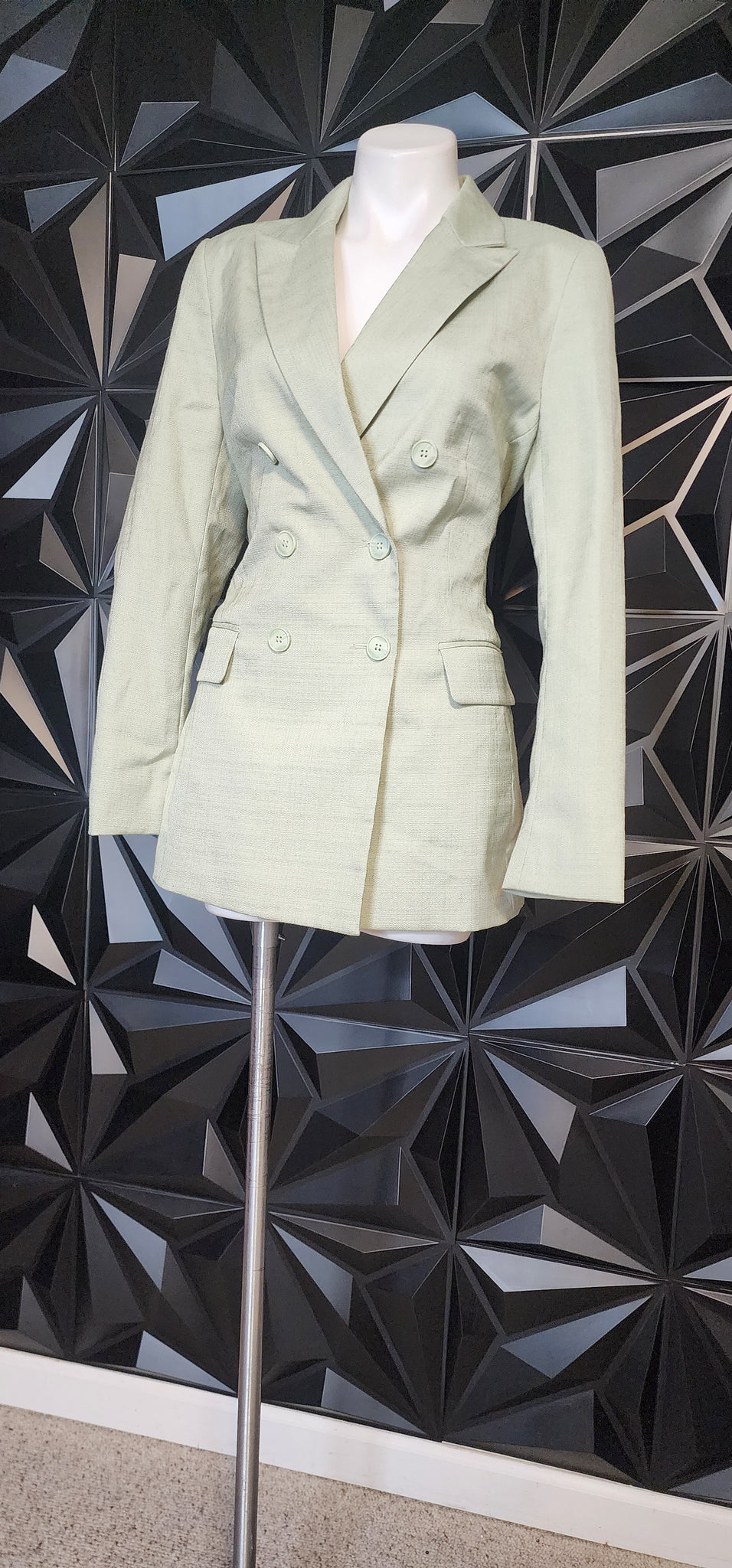 NEW PRIMARK MINT GREEN DOUBLE BREAST BLAZER. THIS BLAZER IS A SIZE 8. LIGHT SHOULDER PADS. NON FUNCTIONING FRONTG POCKETS