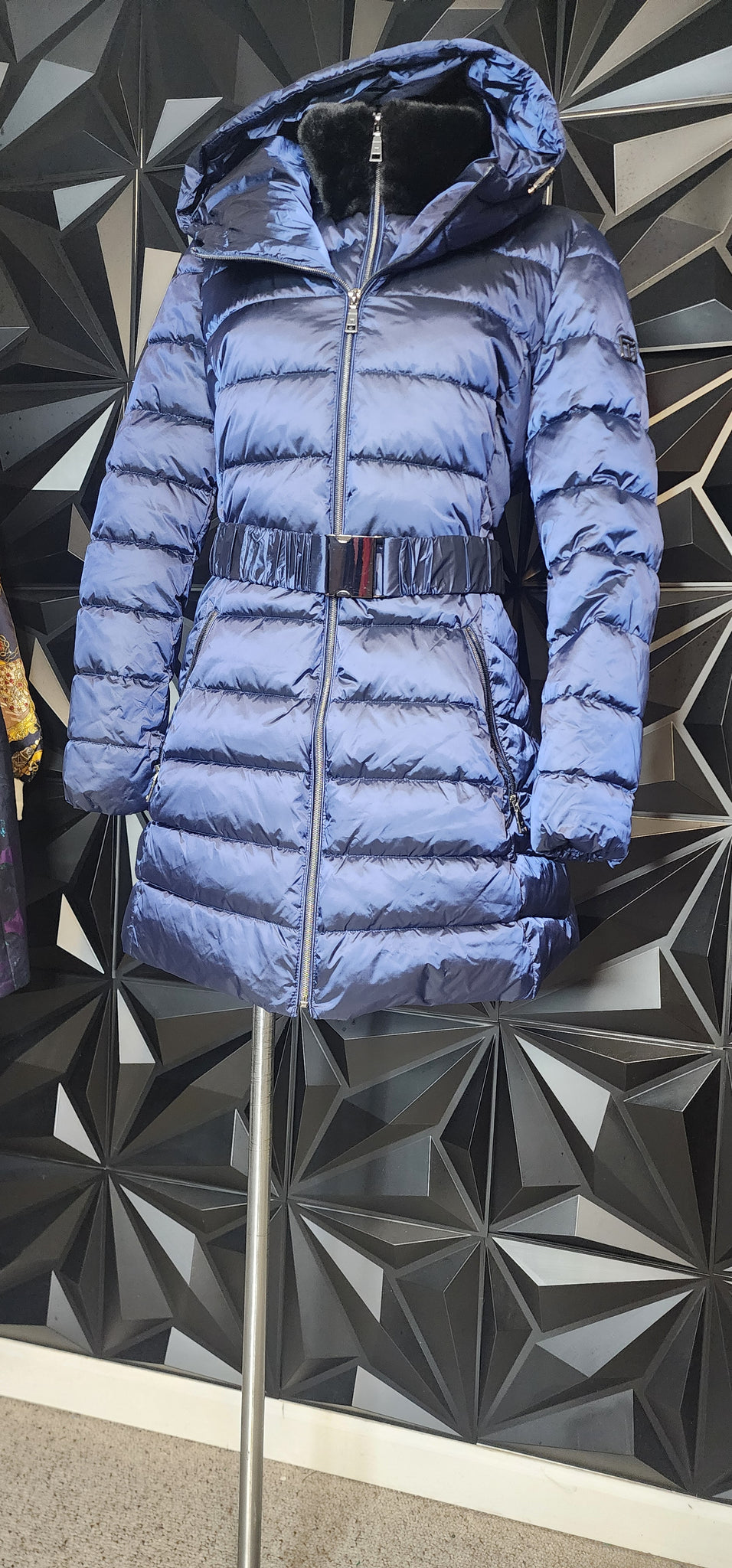 New with out tags Tahari coat w waist belt. 2 layer zip up in front. Soft fur collar. This coat is a size large, best fitting that size 10. Has a hood and pockets