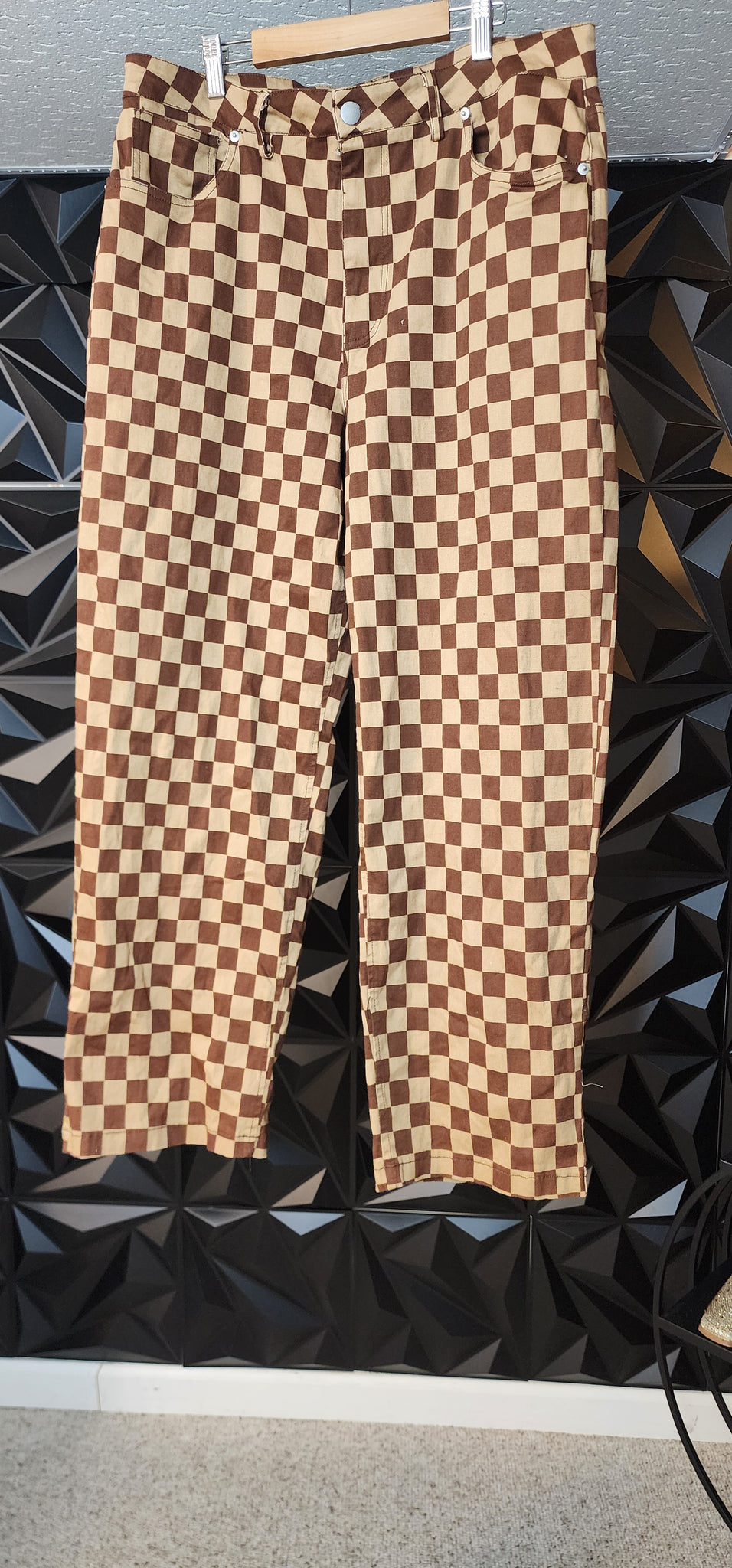 Birch & Stone box print pants. Brown in color. Does have stretch. Size xlrg