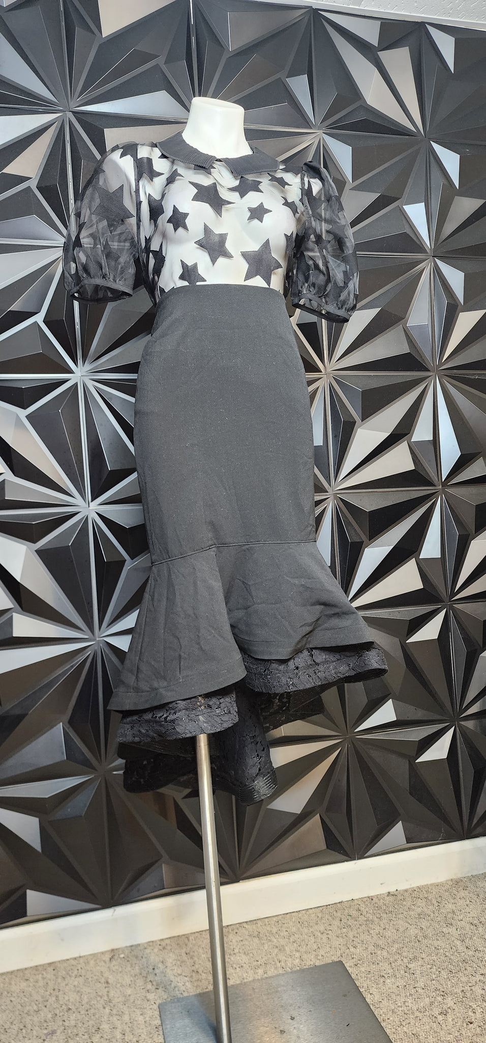 Ashro black high low flare skirt. Size 10. No stretch in the waist.
