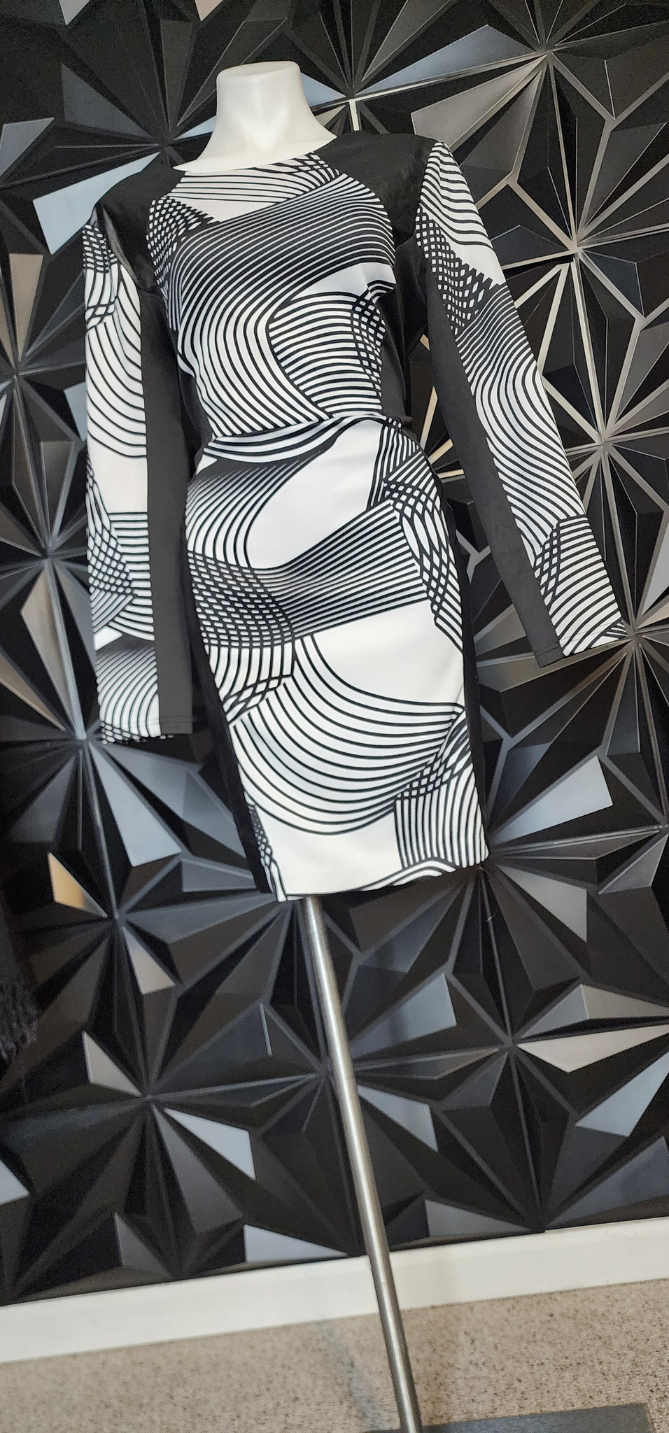 Catos black and white print design dress. This dress zips up the back. has stretch. Size 16