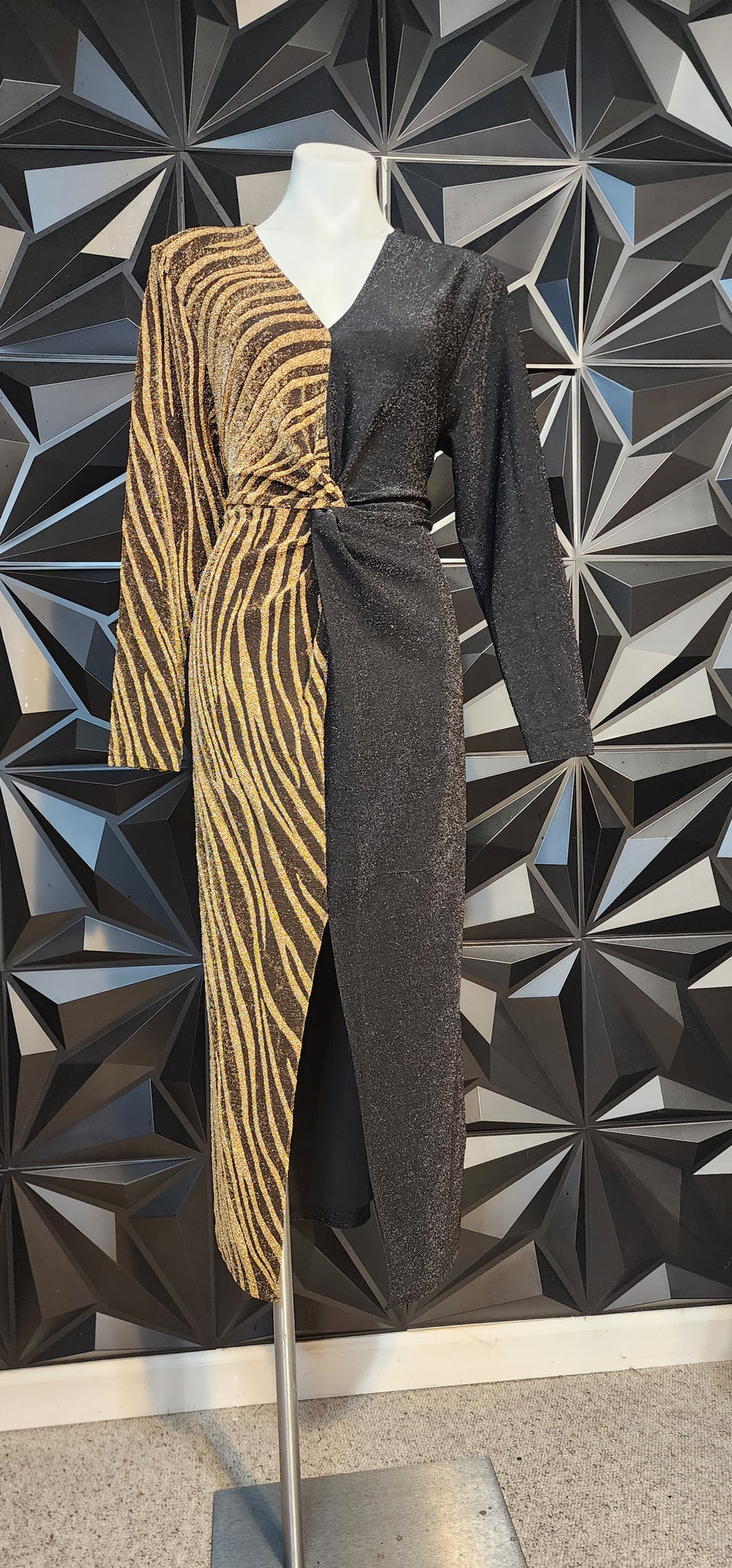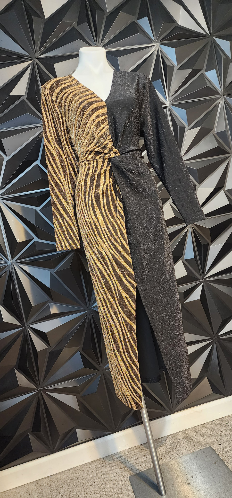 Half and half lightweight dress. This dress is very stretchy. Split in the front. Tagged a size 1xl, fitting a size 16/18