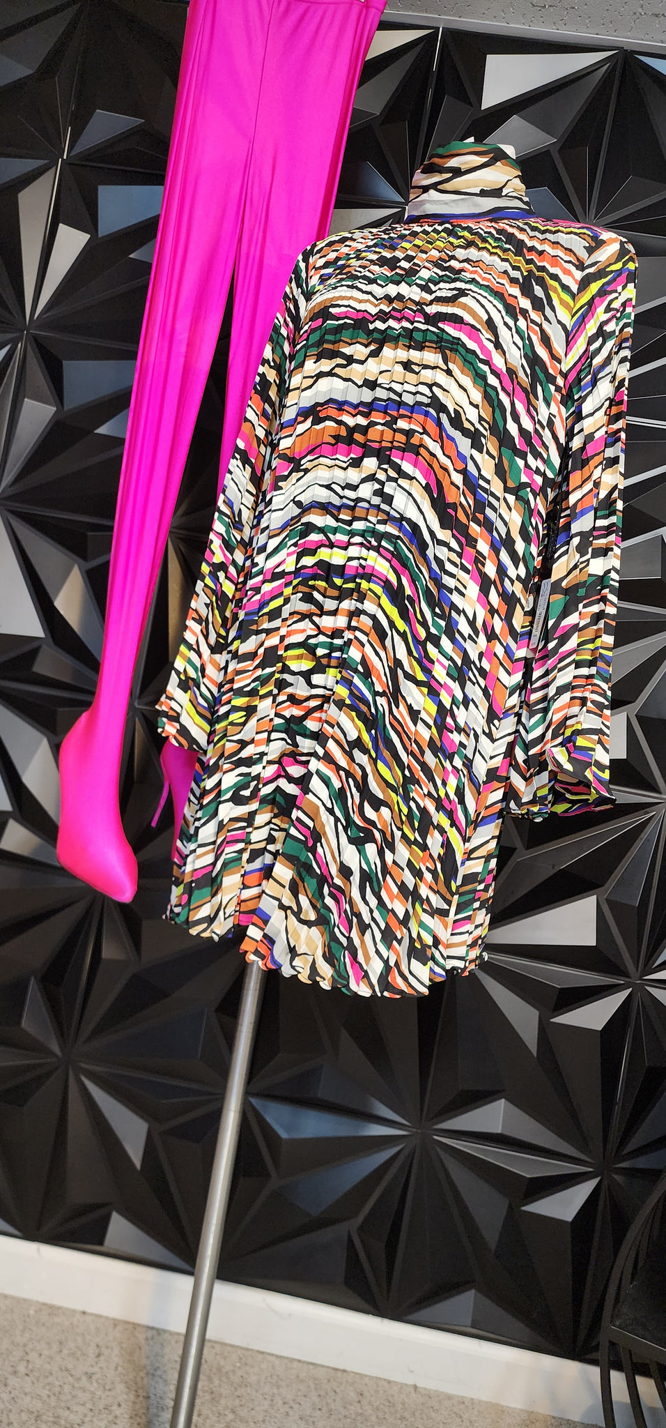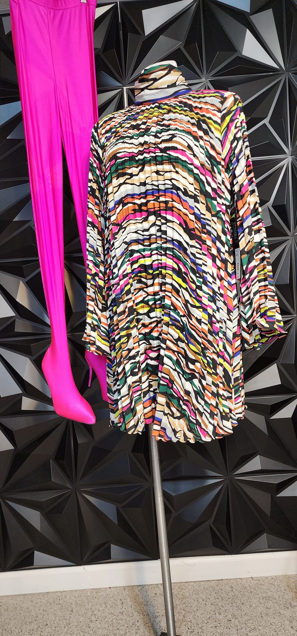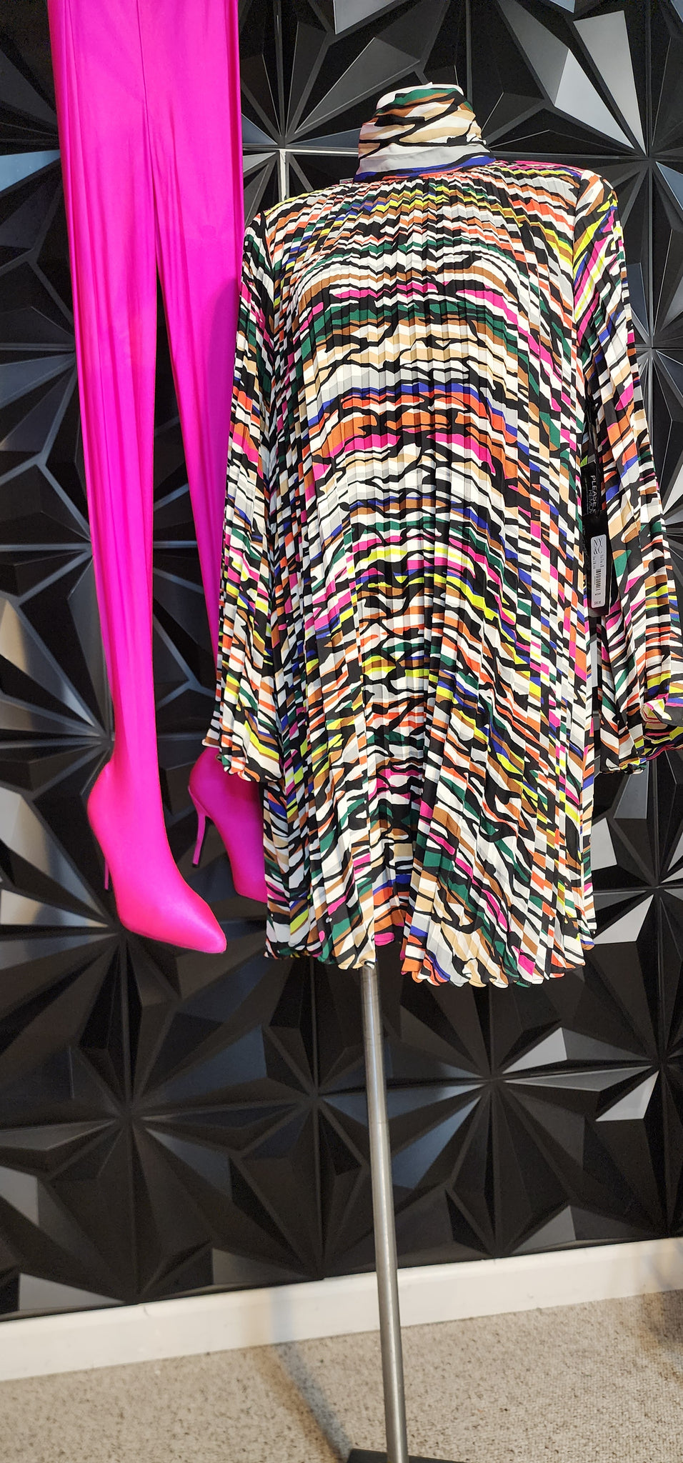 NWT Gabrielle Union pleated colorful dress. Button at the neck. Size medium