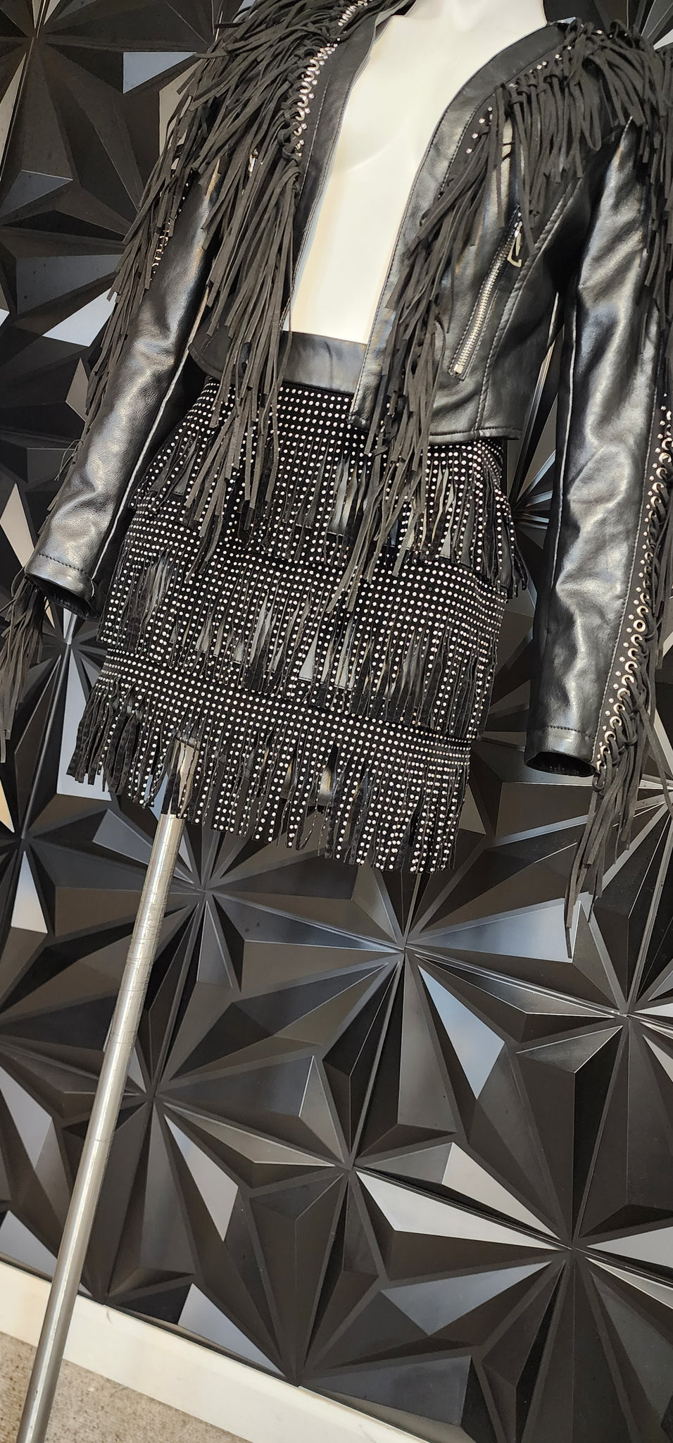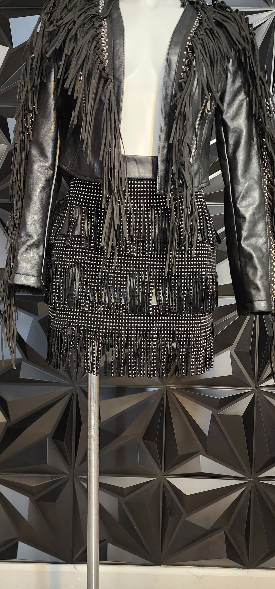 New with tags Sincerely Jules leather fringe skirt. Zips up the back. Size medium (6/8). No stretch