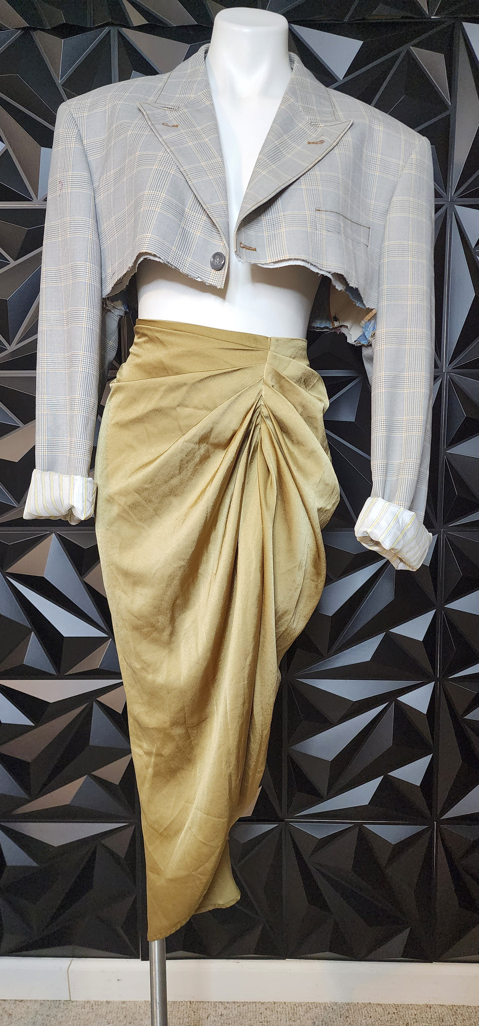 SHein curve olive satin ruche skirt. Has some stretch. Invisible sipper up the back. Size 0xl (14/16)