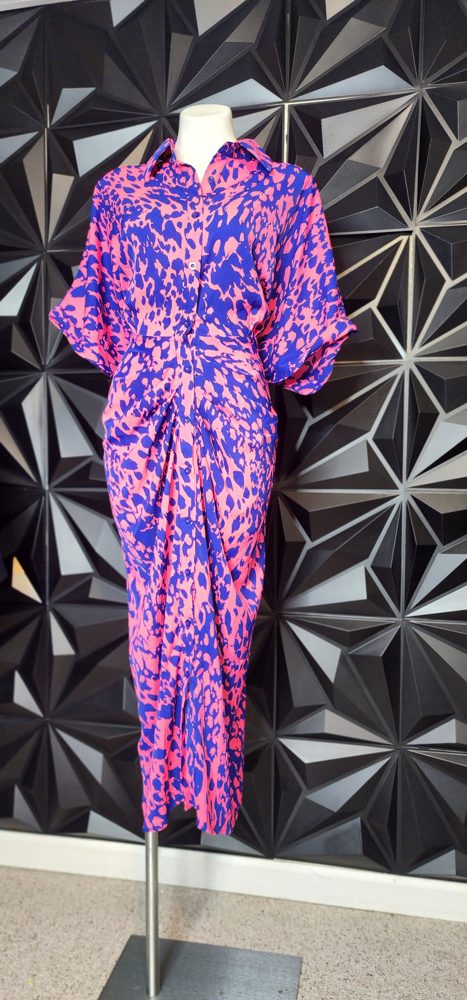 Shein printed dress. Pink and blue. Buttons down the front. tagge a size xxl, best fitting a size 14