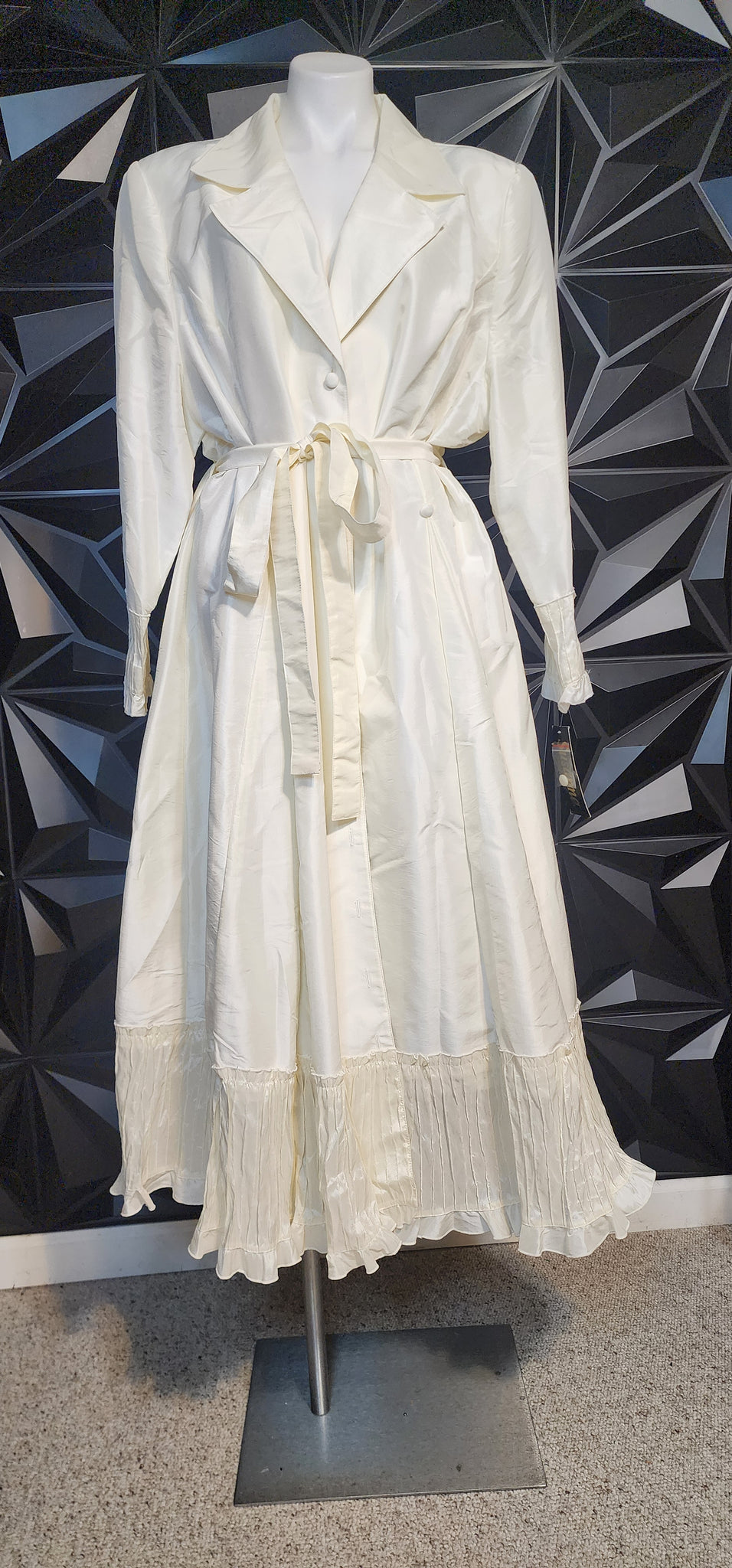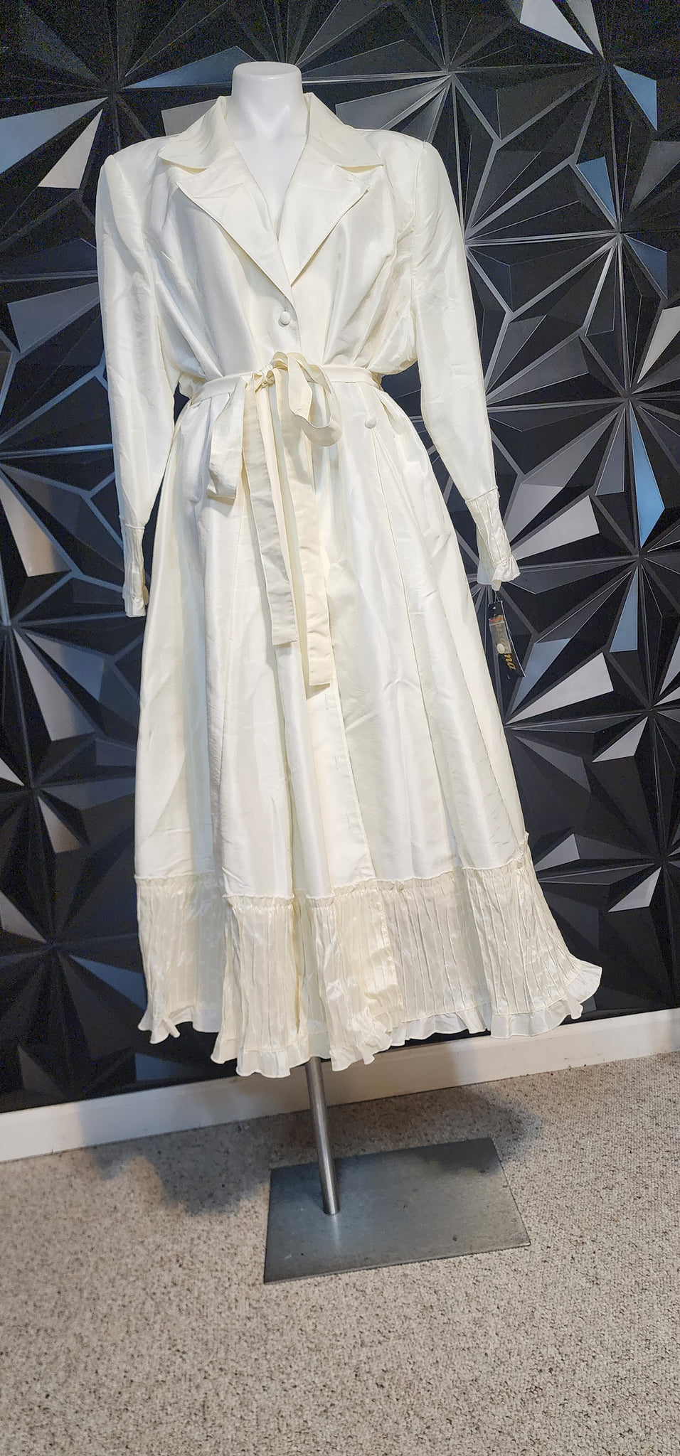New with tags Susanna pleated flare jacket/dress w/ waist belt. Off white in color. 100% polyester. Lightweight. Button down the front. Tagged a size 22, Fitting sz xl-20