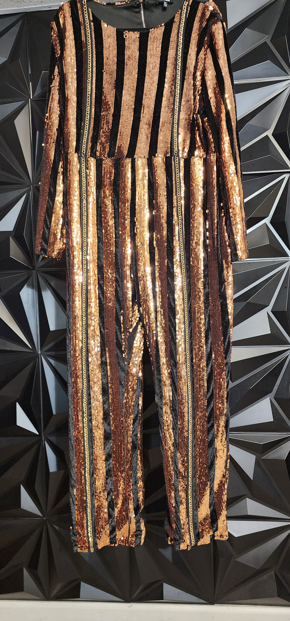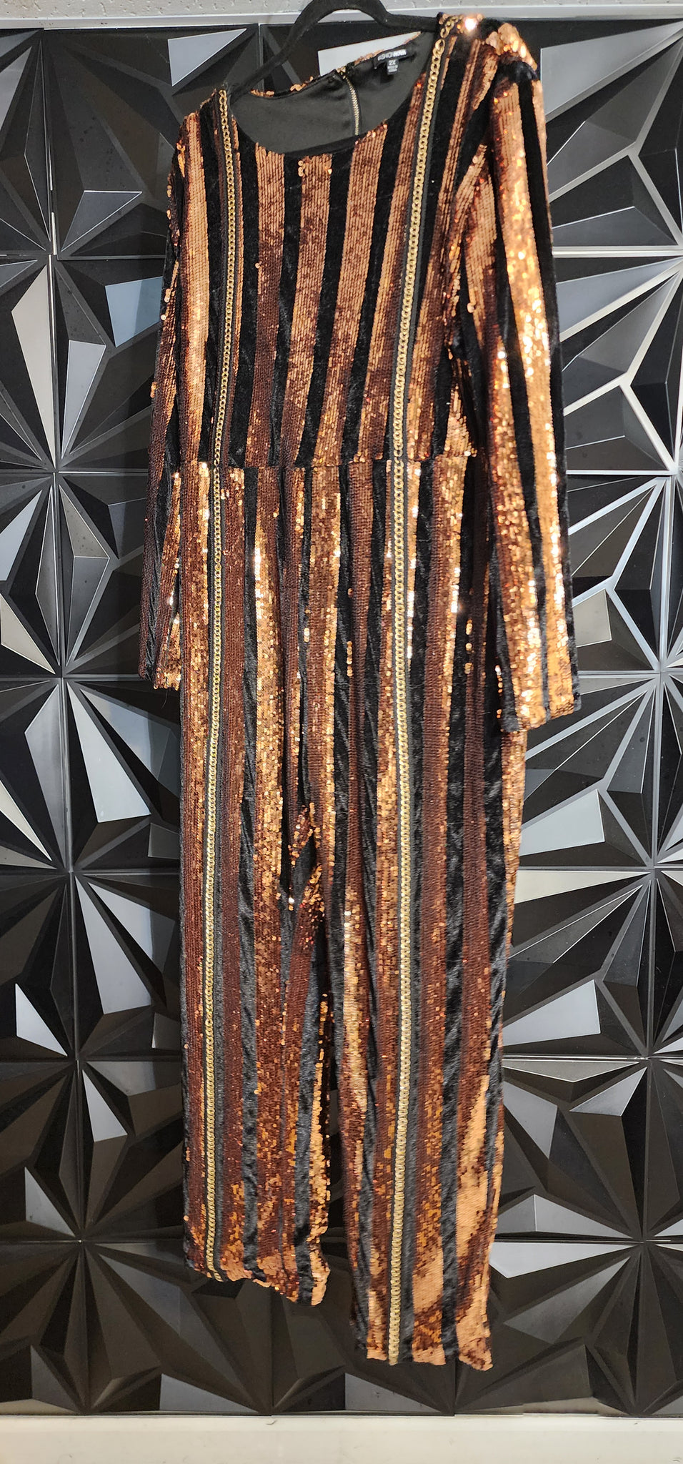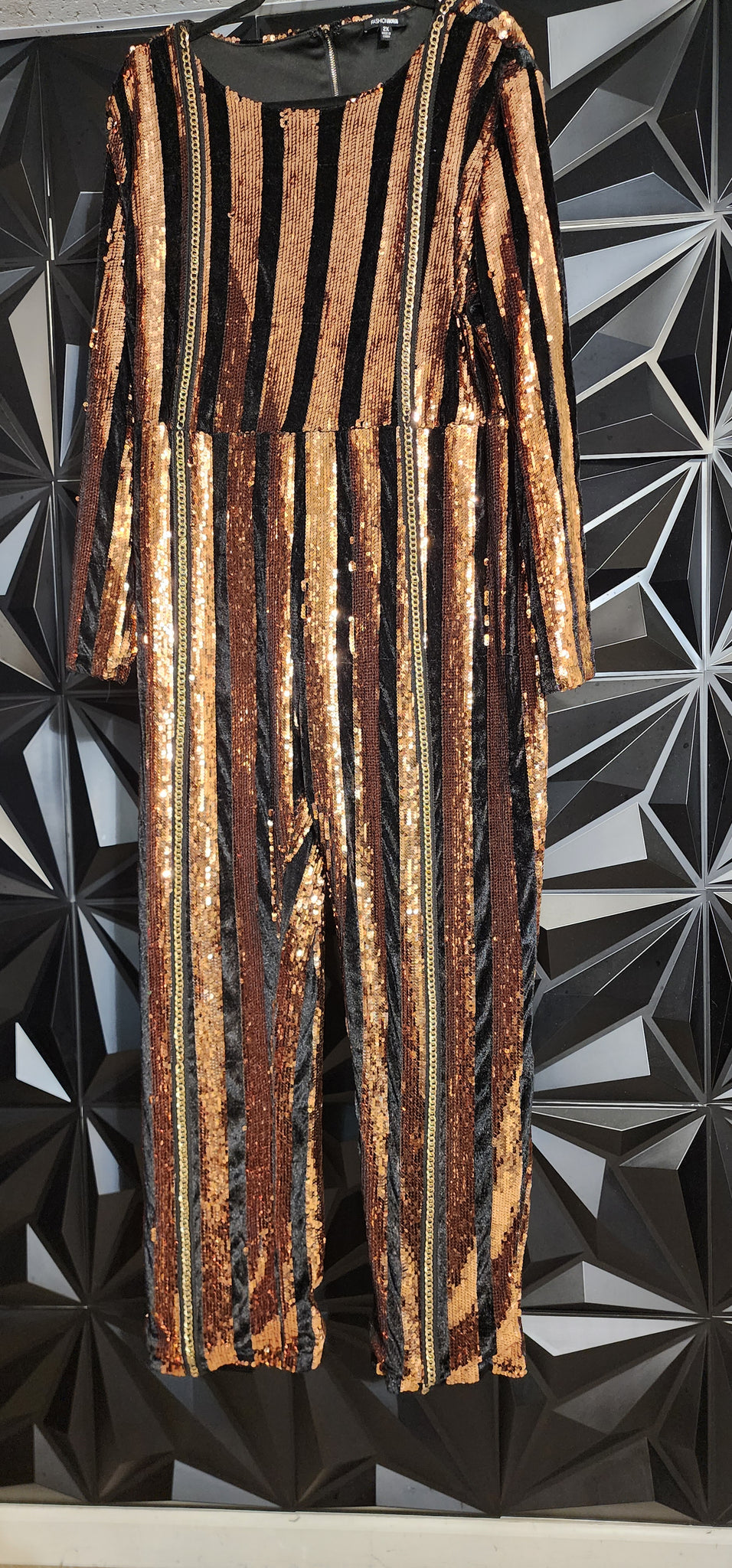 Fashion Nova sequin stripe jumpsuit. Has stretch. Size 2x (16/18 fit). Average height