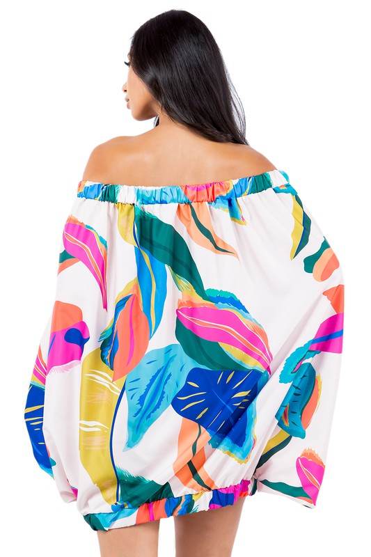Sexy party dress, off shoulder, long bishop bell sleeves, mini dress