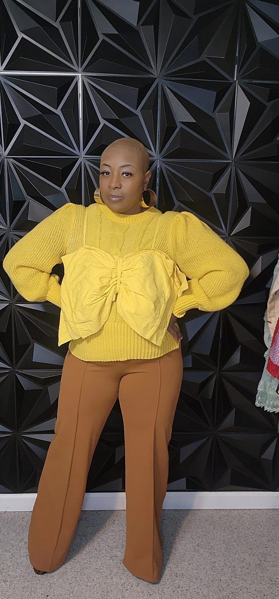 Brown pant/yellow sweater/bow top 3 piece set sz lrg/xlrg