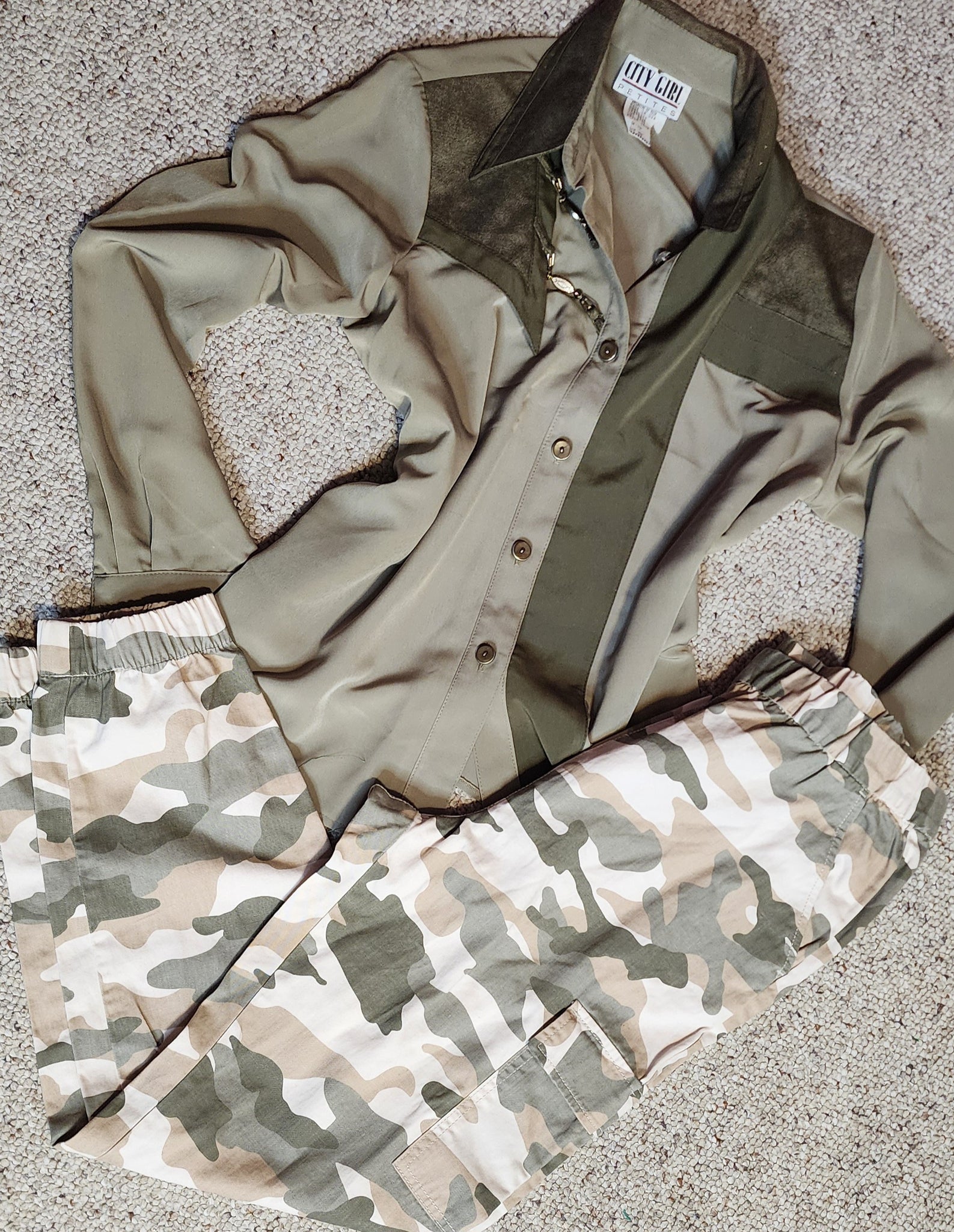 CAMO PANT/BLOUSE 2 PIECE SET SZ 10