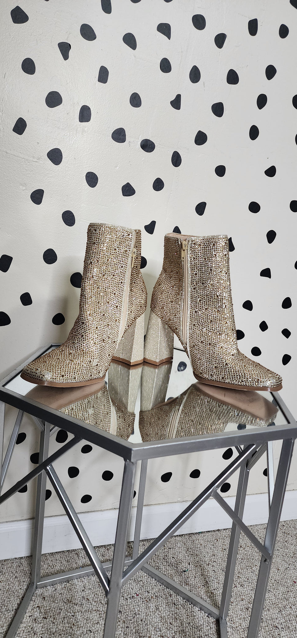 NEW CHASE AND CHLOE RHINESTONE BOOTIES. 3 INCH CHUNKY HEELS. ZIP INSIDE. SIZE 9