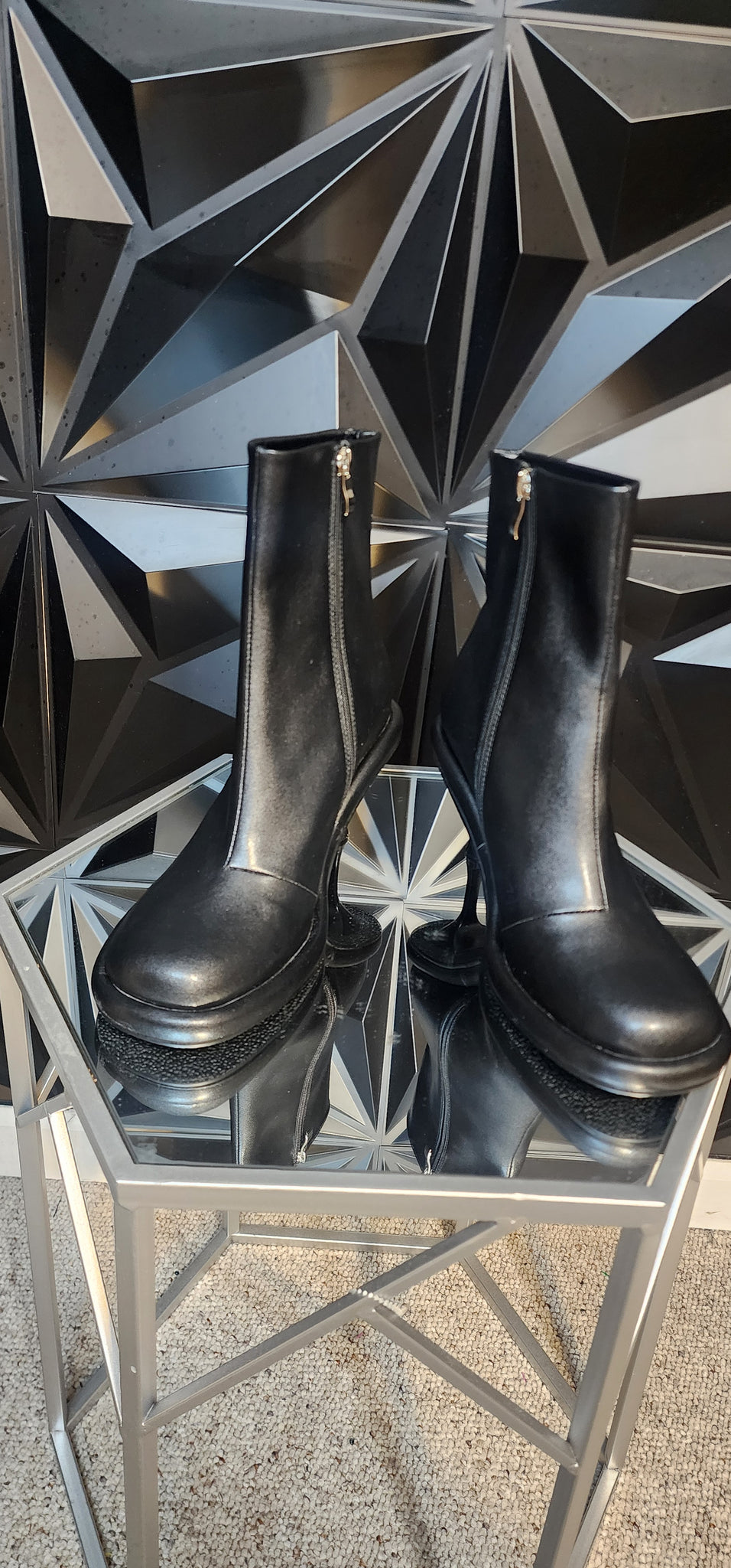 Brand new Black wide front heels. Zip inside. Unbranded.  Size 42=11US. 2 inch heels