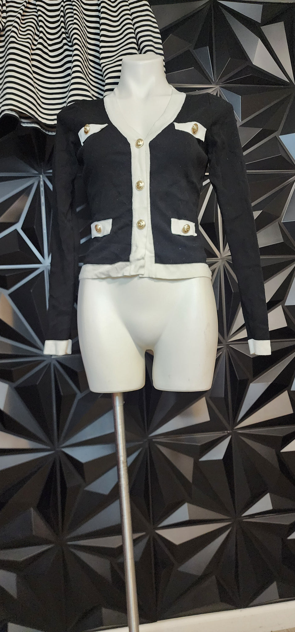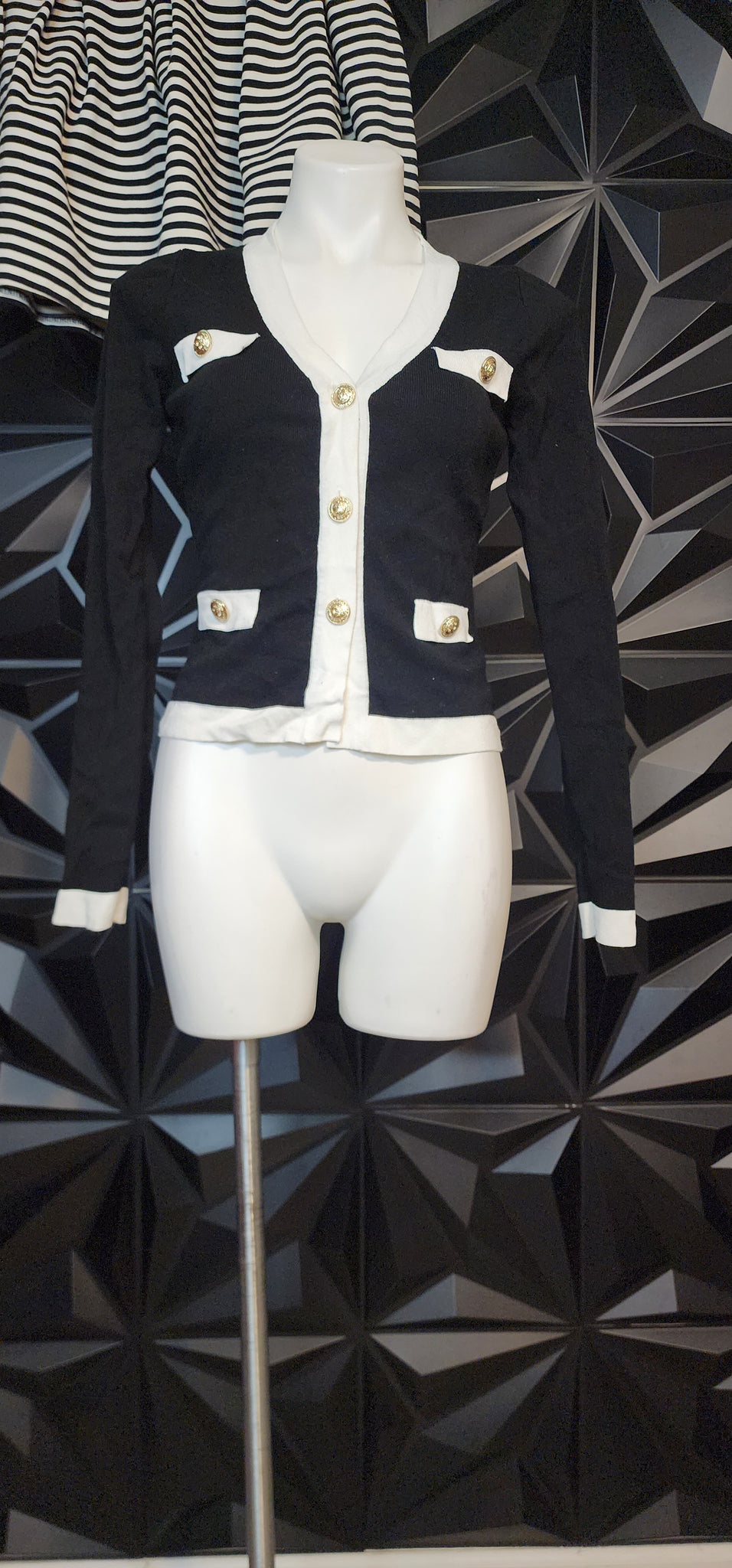 Fashion nova black and white cardigan. Tagged a size large, best fitting a size medium -lrg, 10). Does have stretch. Button down the front.