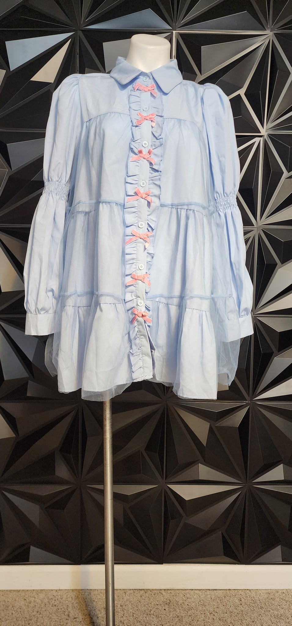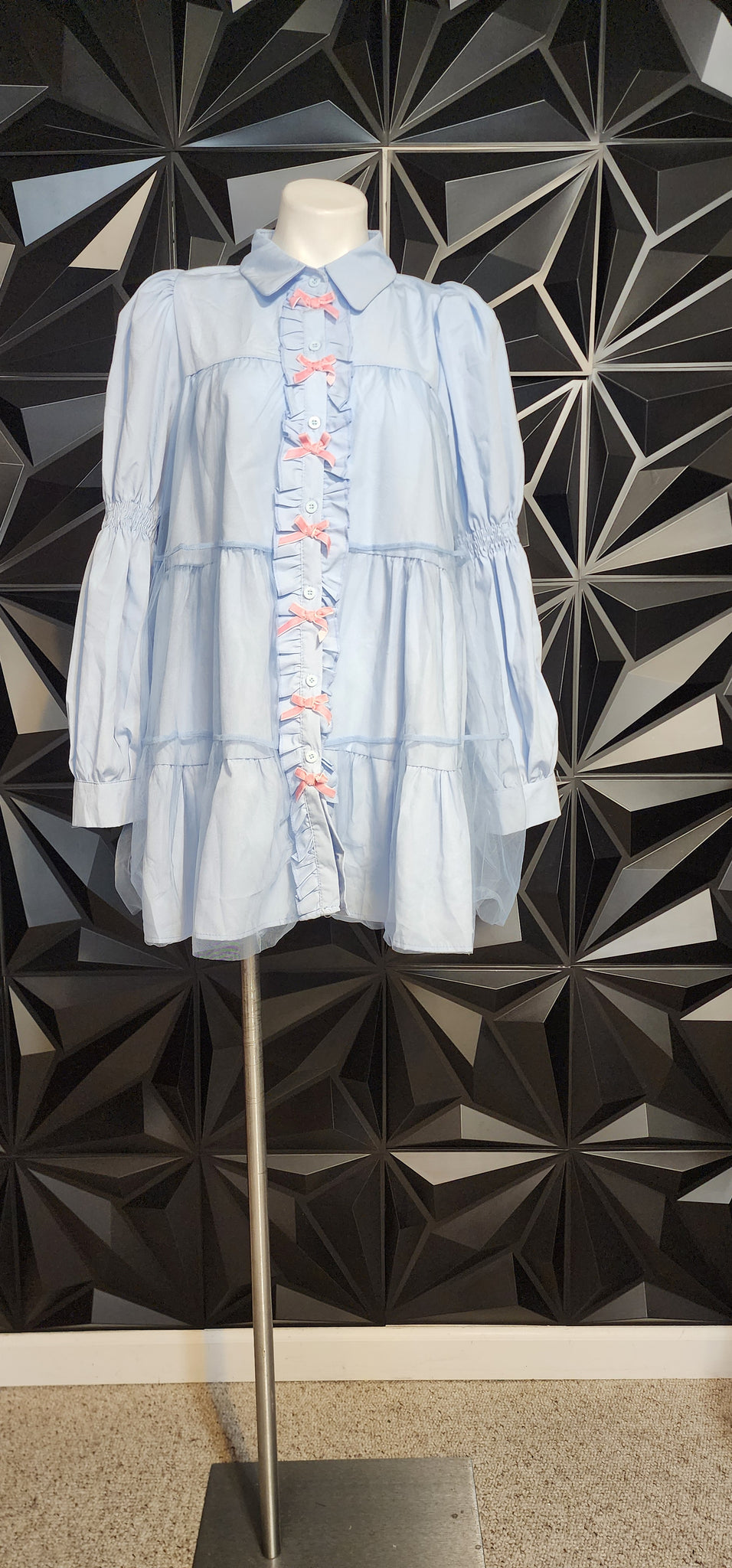 NEW WITH TAGS CANVA GIRL BOW BABY DOLL TOP. THIS TOP IS TAGGED A SIZE MED FITTING UP TO A SIZE LARGE, 14