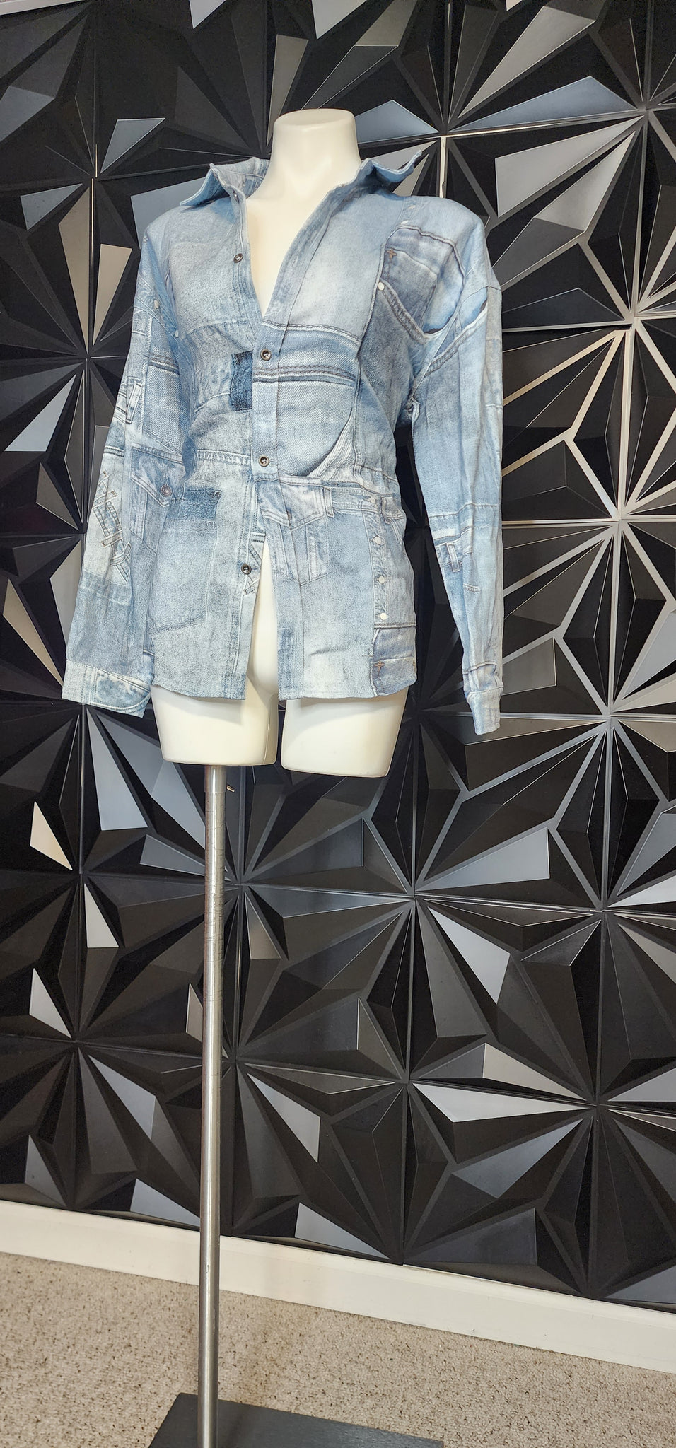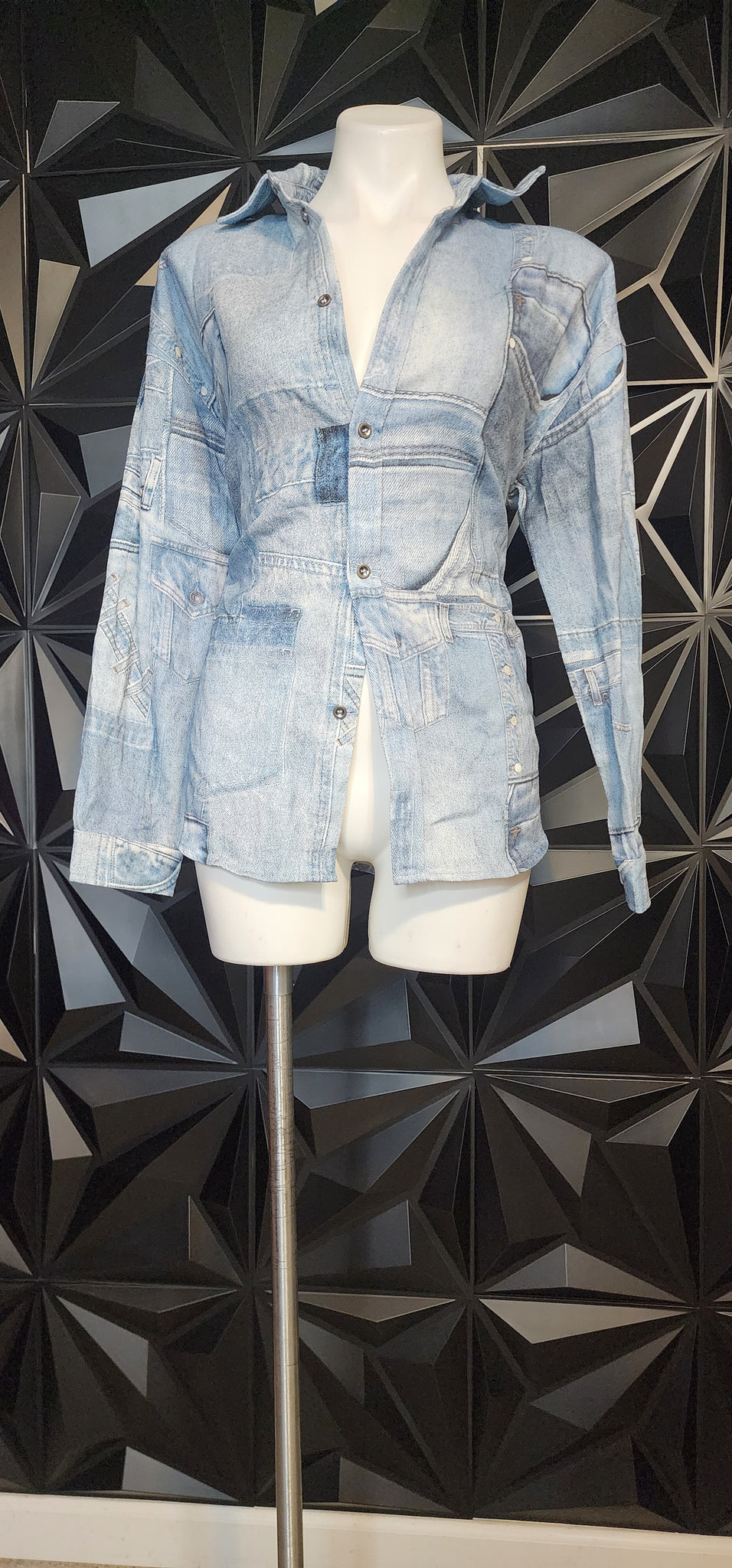 NWT FASHION NOVA DENIM PRINT TOP SZ MEDIUM -10