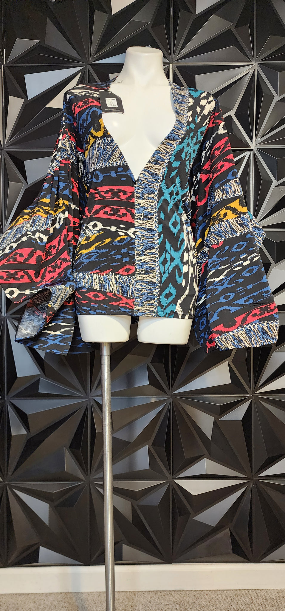 NEW WITH TAGS FASHIONNOVA MULTICOLORED WIDE ARMED TOP. THI STOP DOES HAVE STRETCH. TAGGED A SIZE XLRG (FITITNG LRG-XLRG)