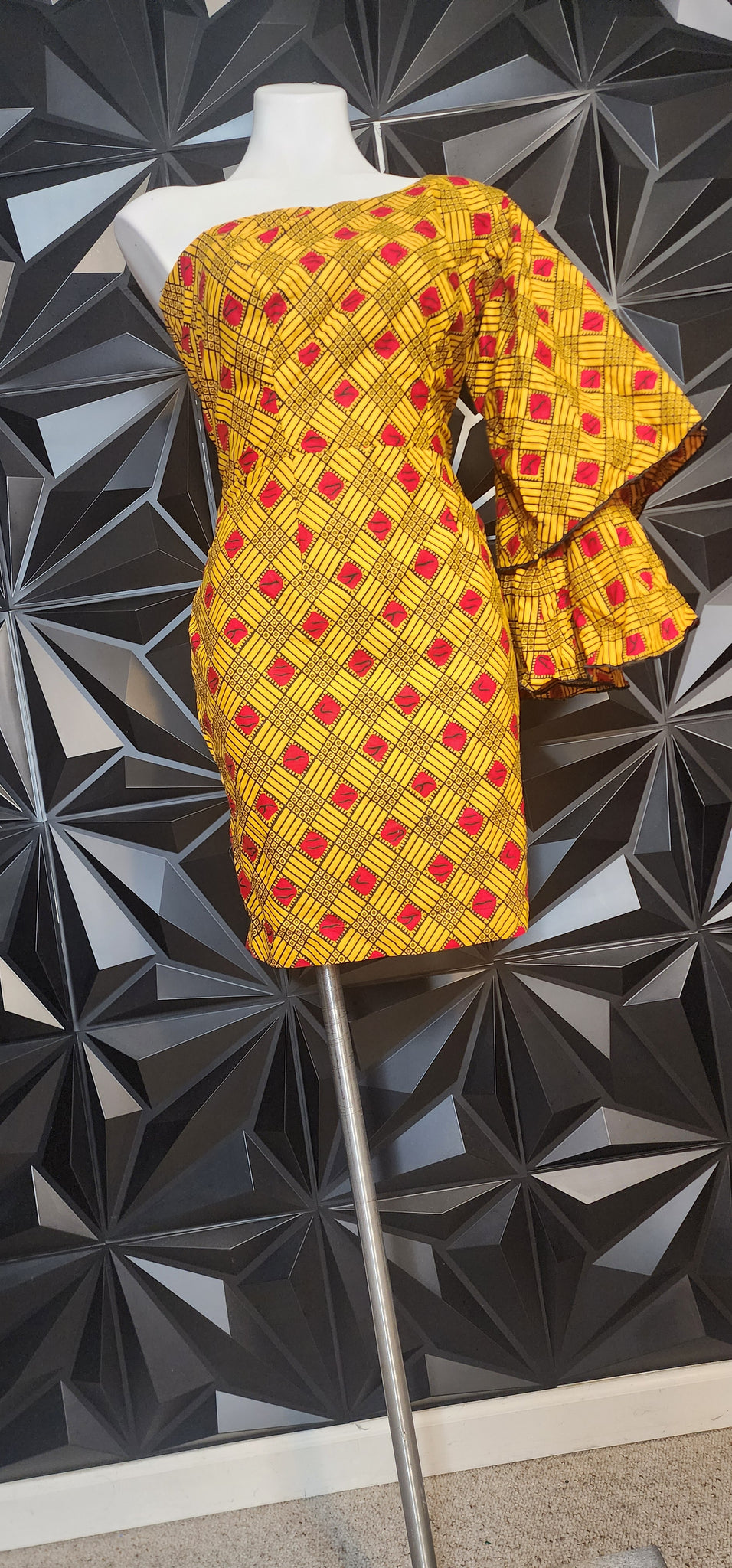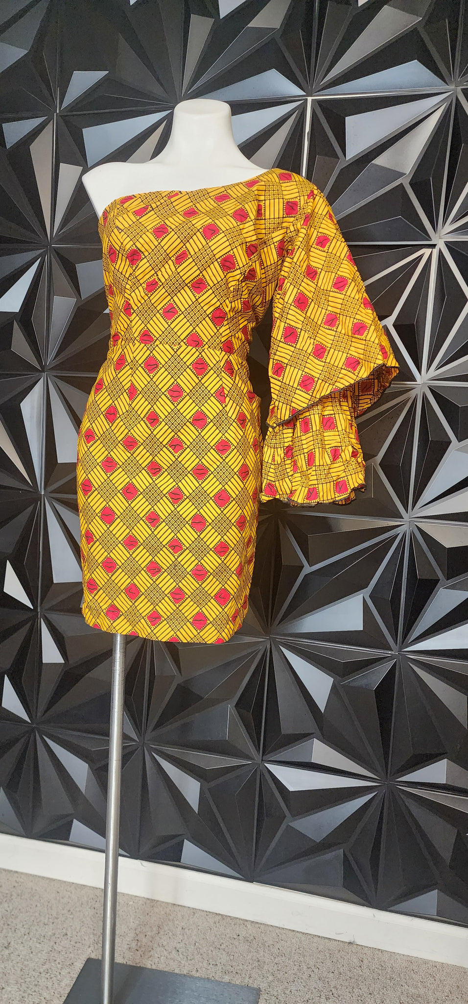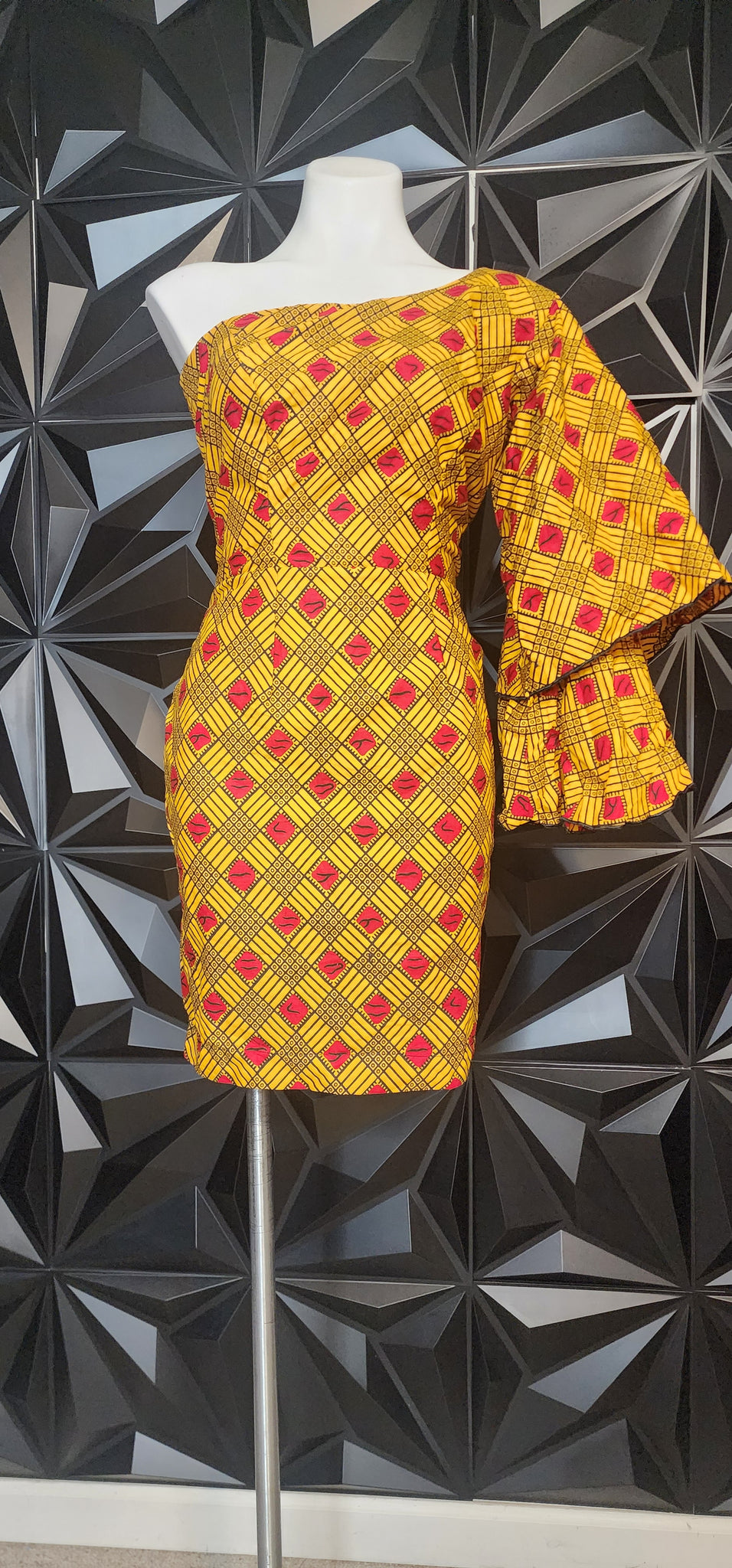 Ankara 1 arm dress. Zips up the back. Unbranded and Untagged. Best fitting size medium (see measurements)