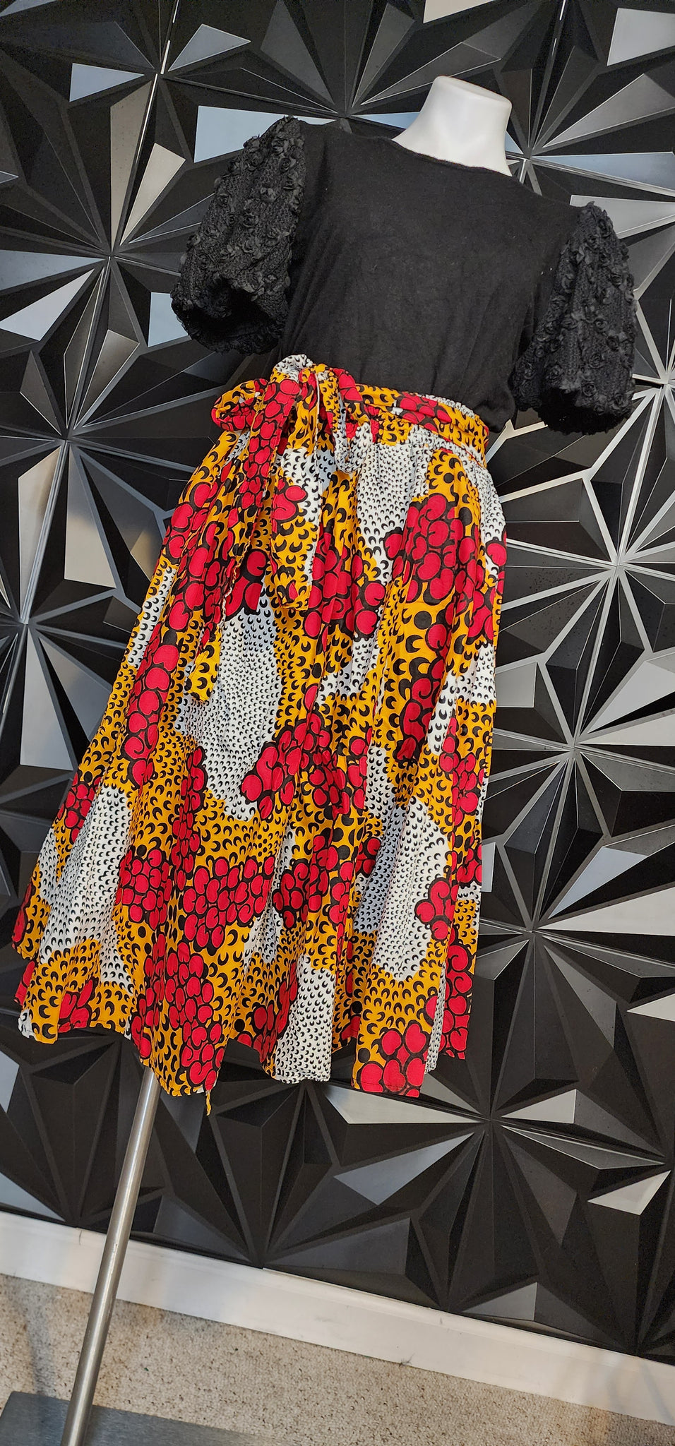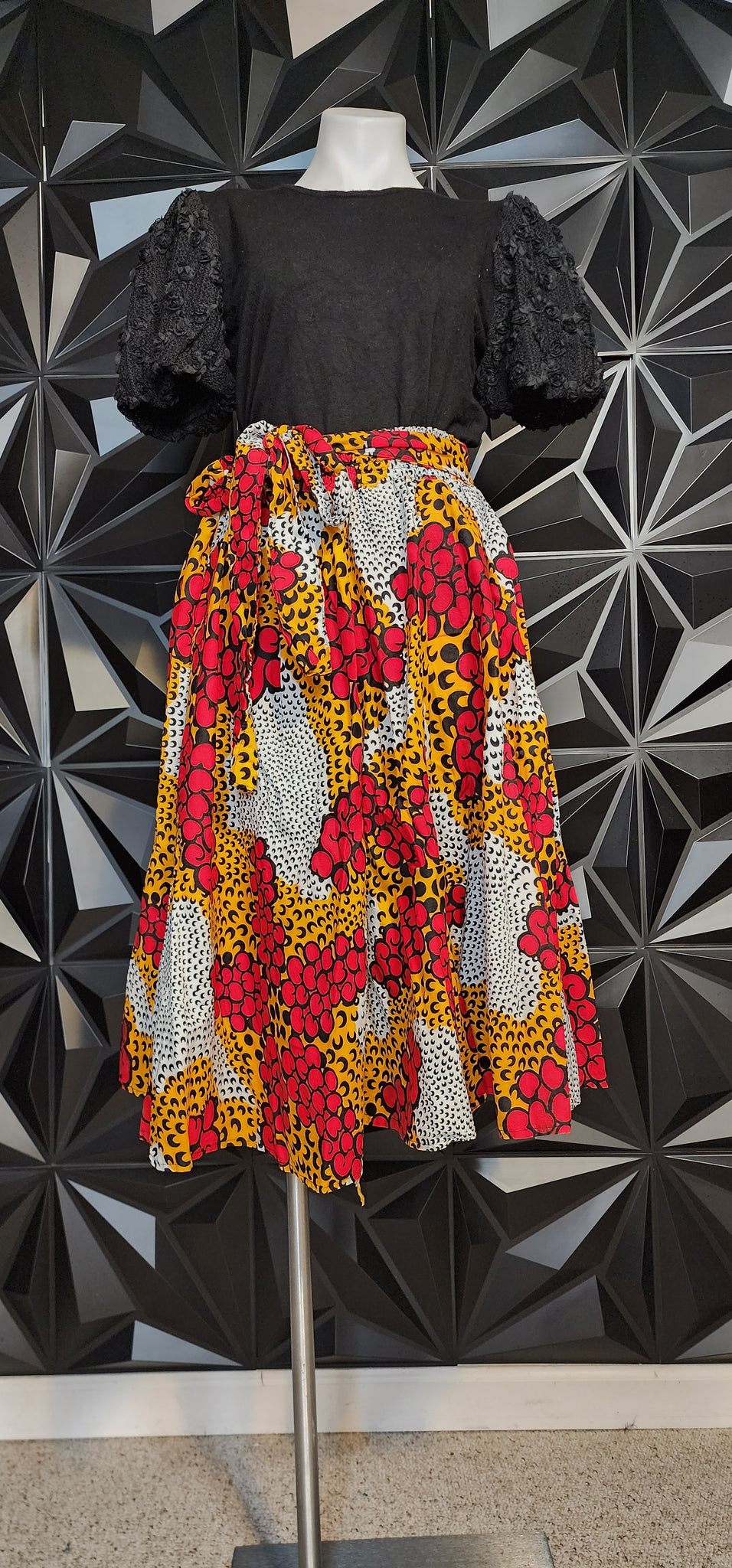 Ankara multicolored skirt w/ attached belt. Elastic waist. This skirt is one size (up to 1x)