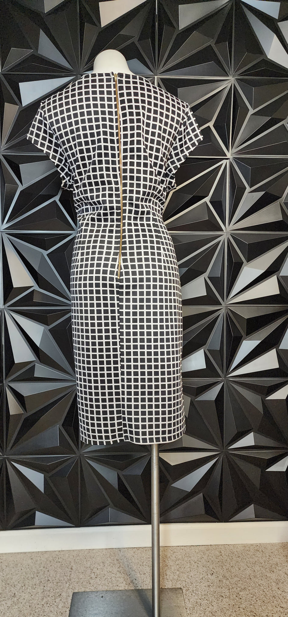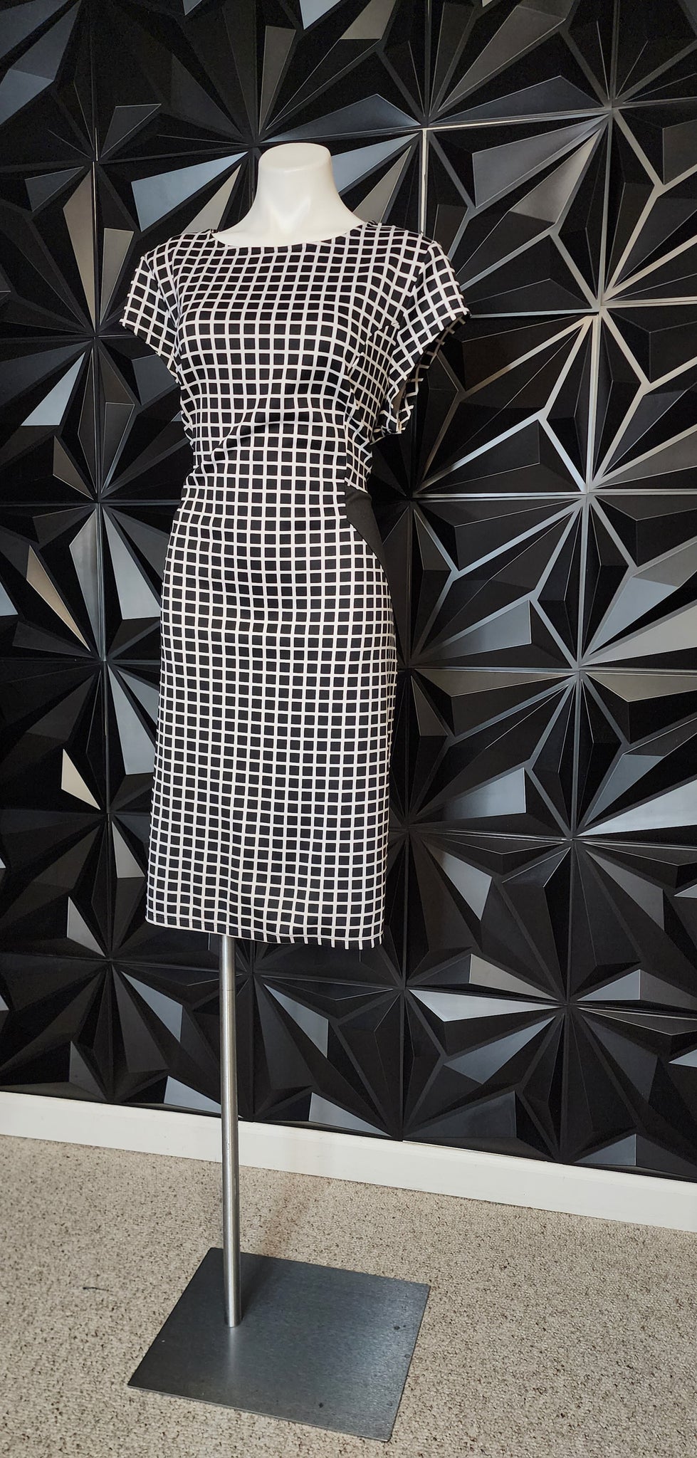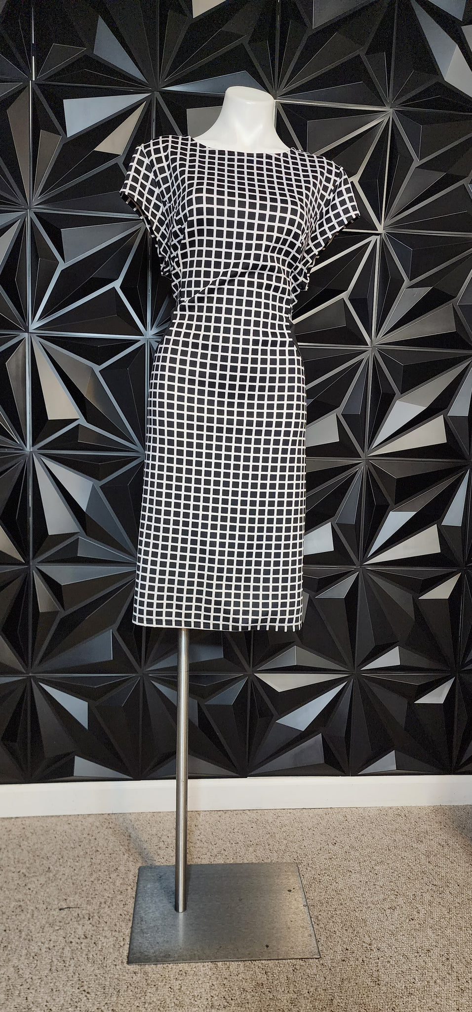 ASHLEY STEWART BOX PRINT DRESS. THIS DRESS DOES HAVE SOME STRETCH. IT IS A SIZE 18/20. ZIPS UP THE BACK