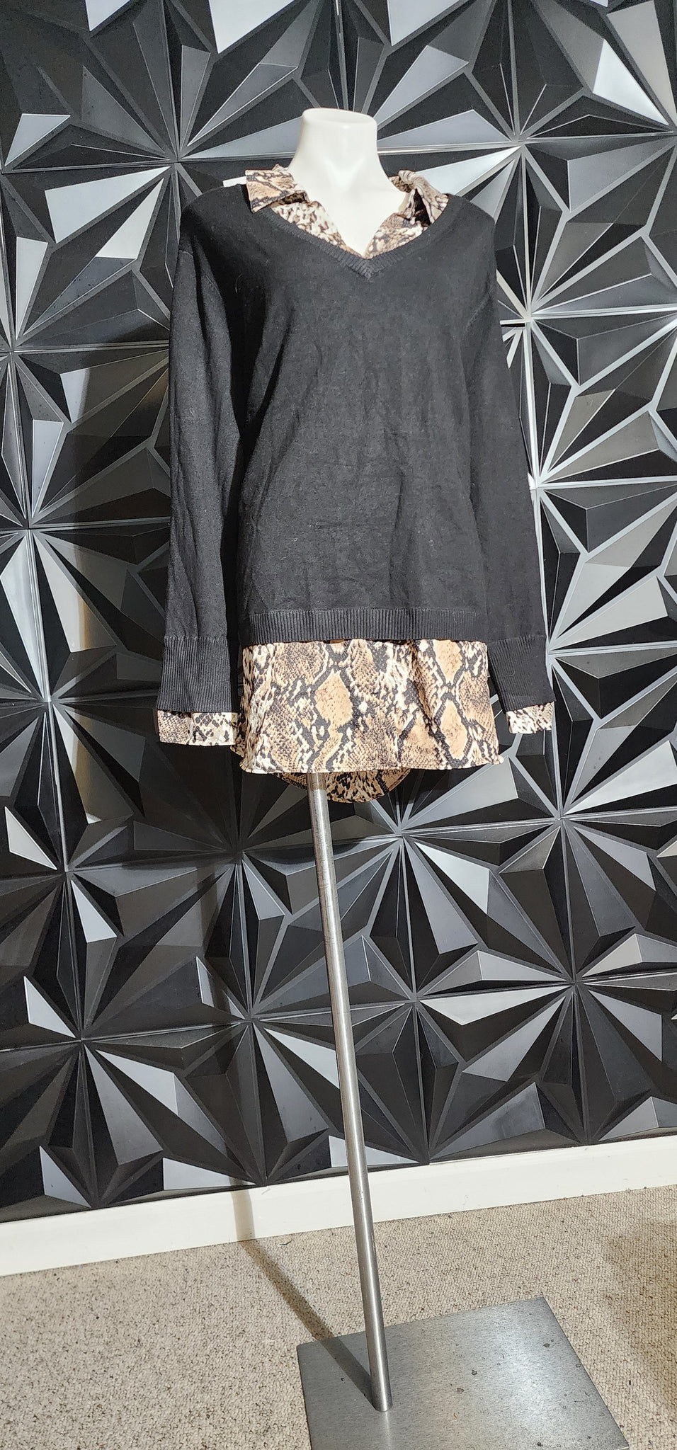 Belle Kim Gravel layered top. This top is a size 3x and does have stretch