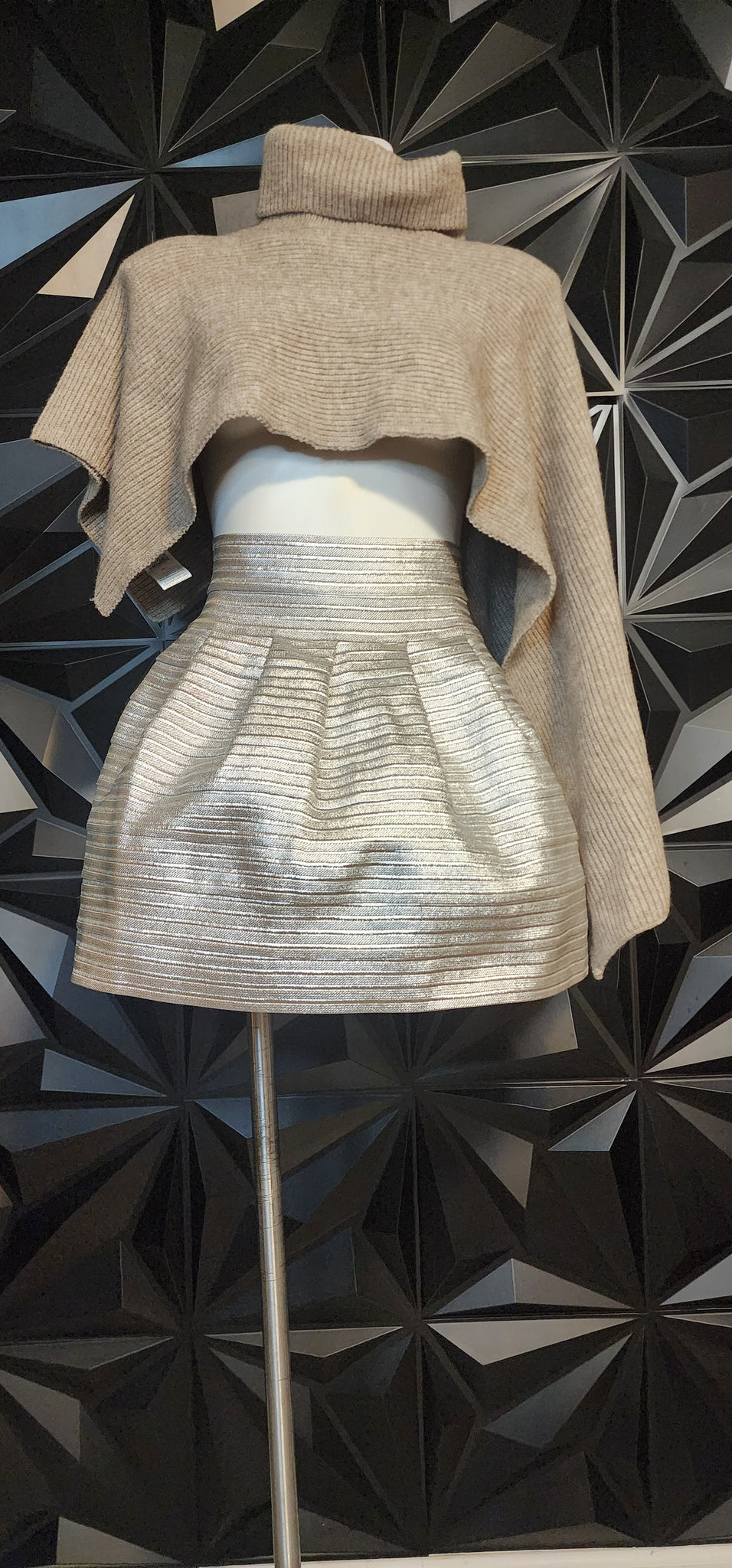 Beulah flare structured skirt. Gold/silver metallic color. Elastic waist. Zip up the back. SIze med/lrg (up to sz 14)