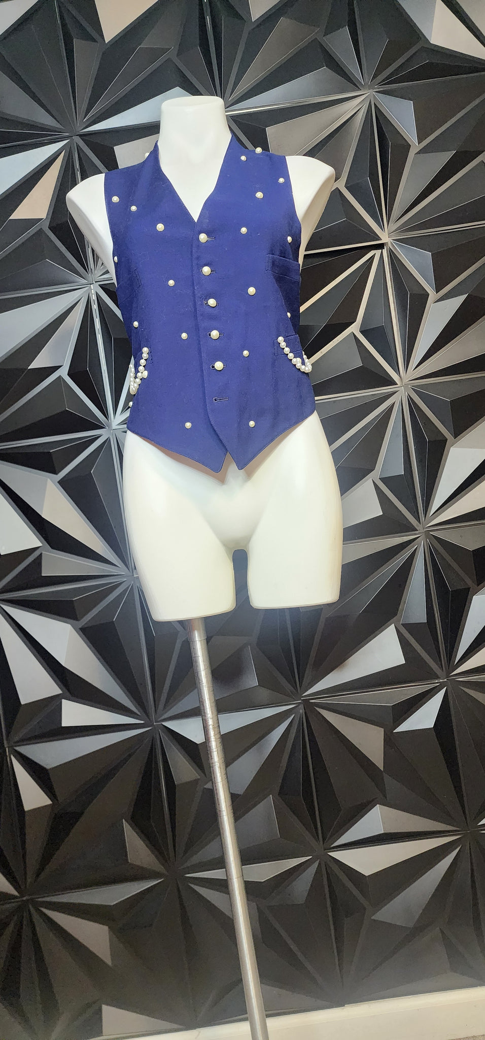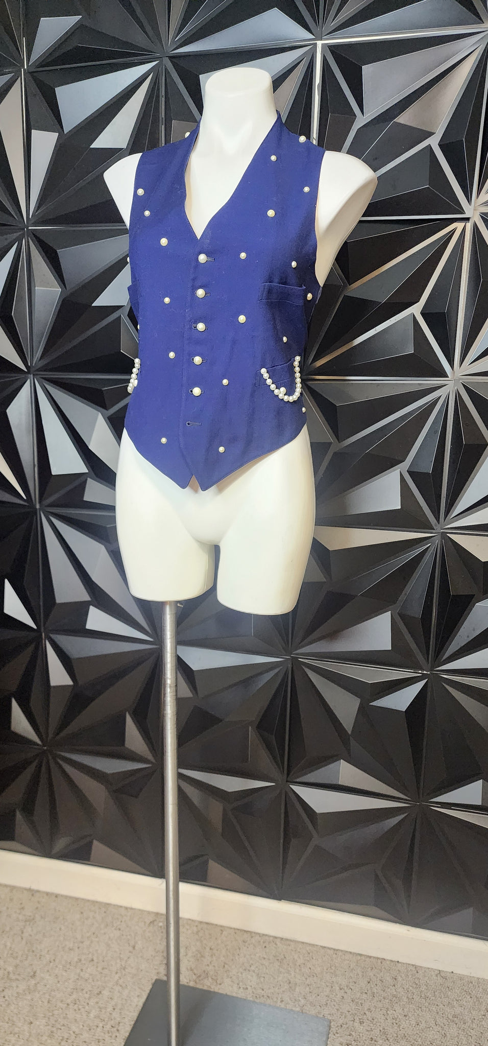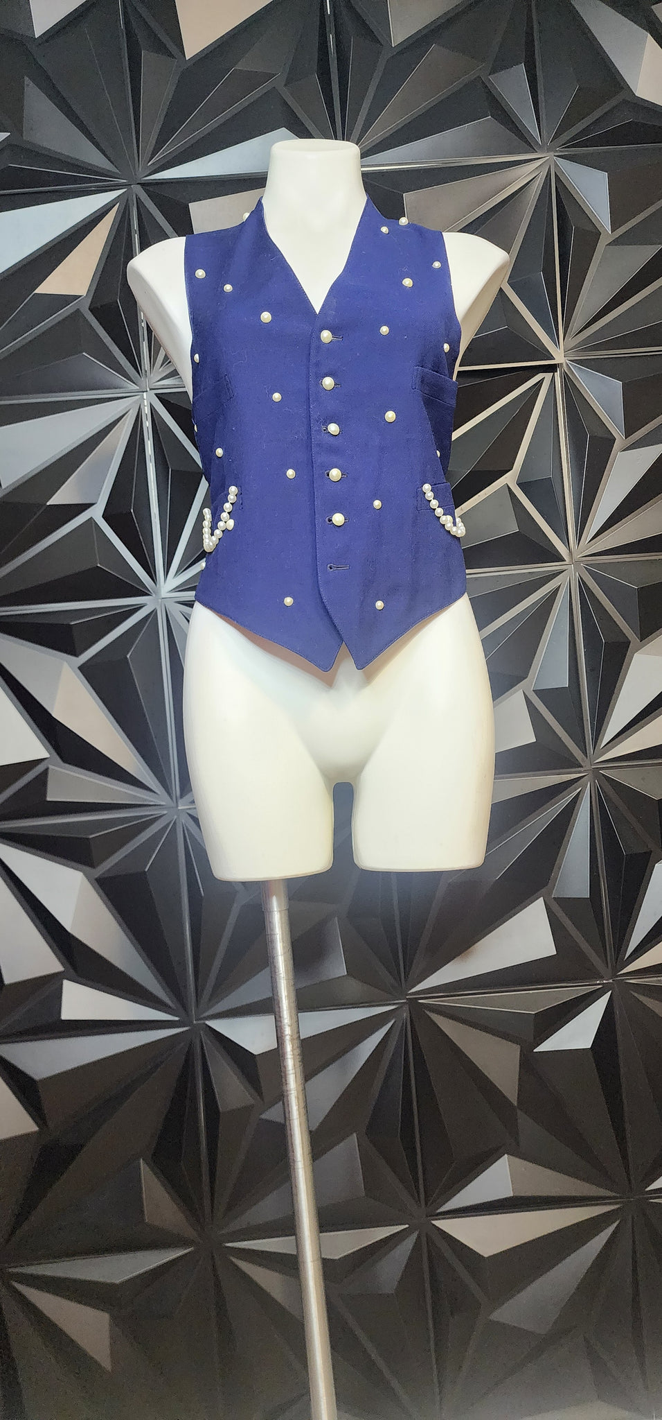 Blondies navy blue vintage vest. Button down the front. Tagged one size. Best fitting sz sm-med. Adjustable in the back