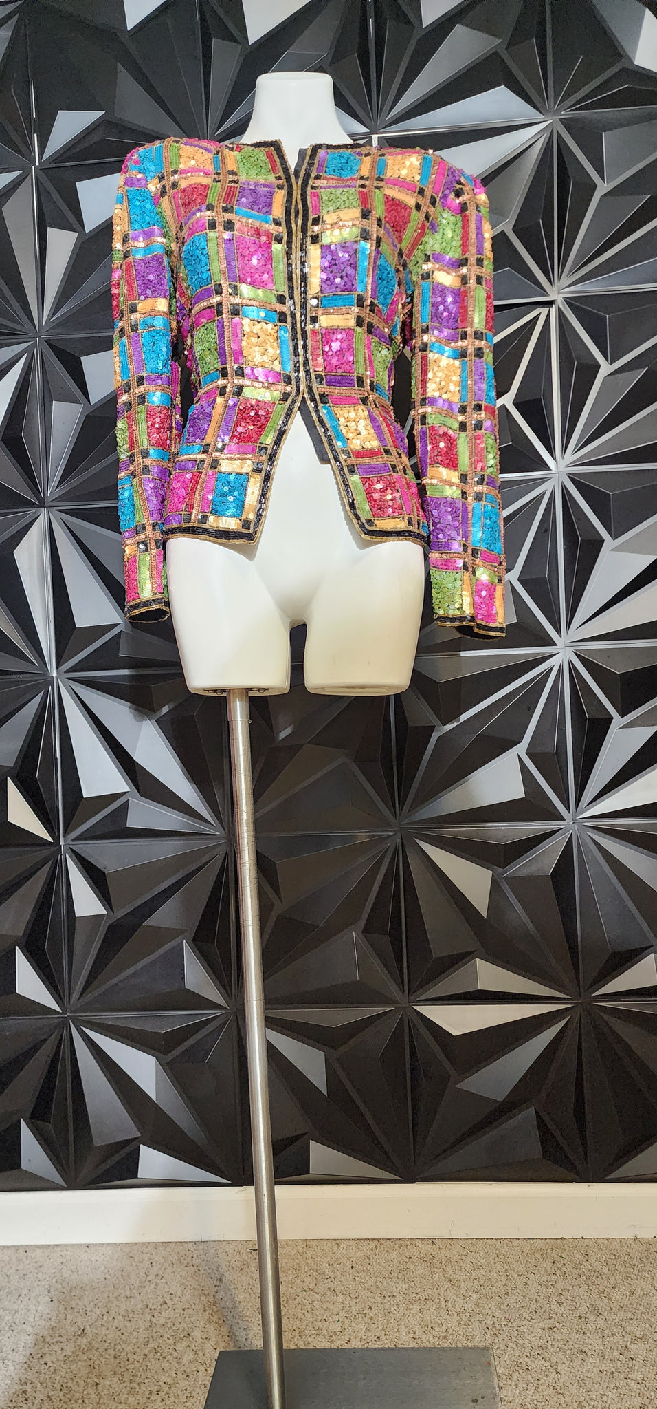 Lawrence Kazar sequin vintage blazer. Hook closure, but can be worn open. Size large fitting sz 12-14