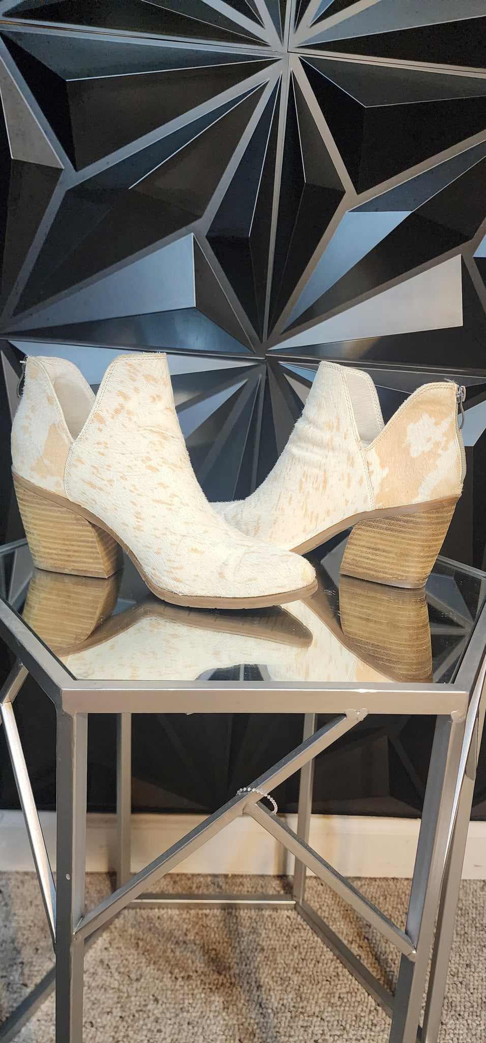 Micahel Shannon printed booties. Cream color. Size 8. Zip in the back. mo hair material