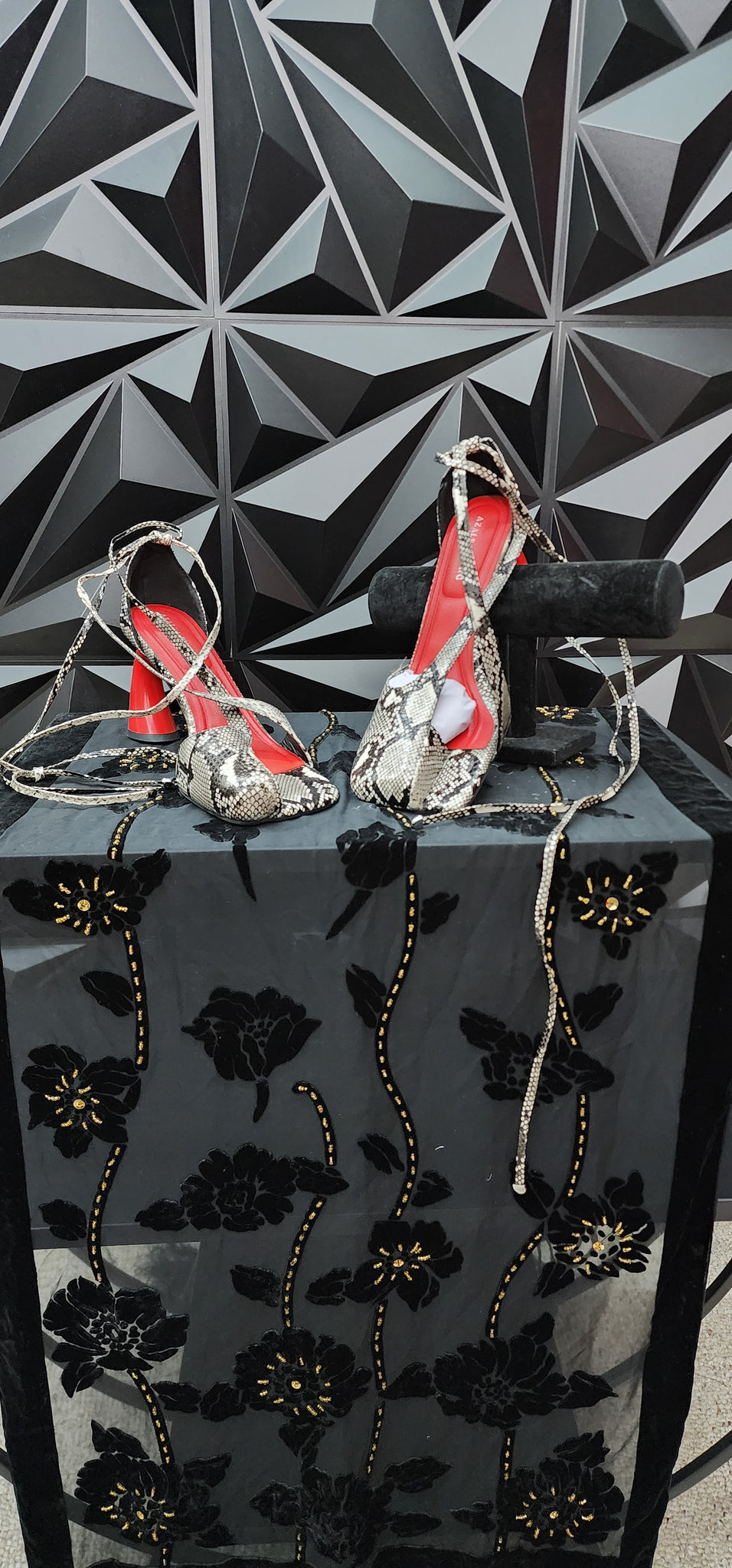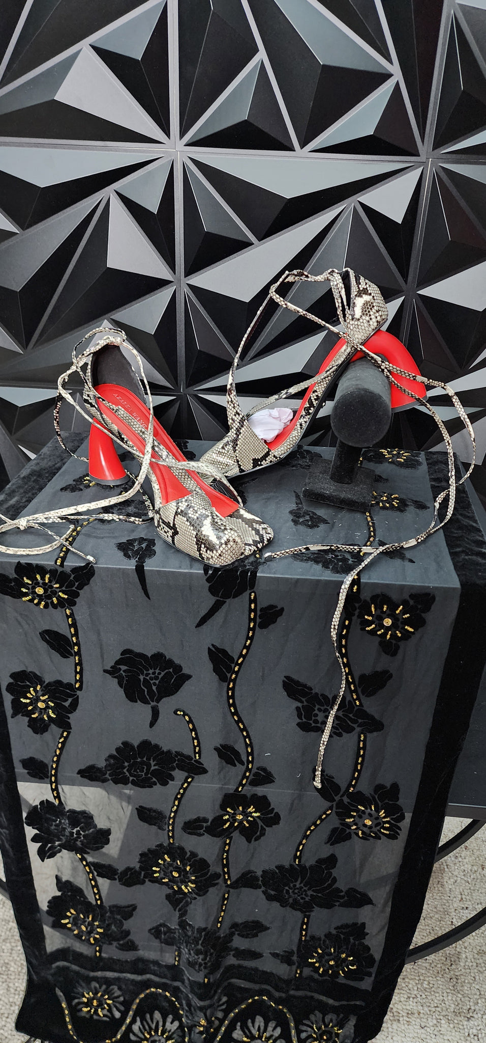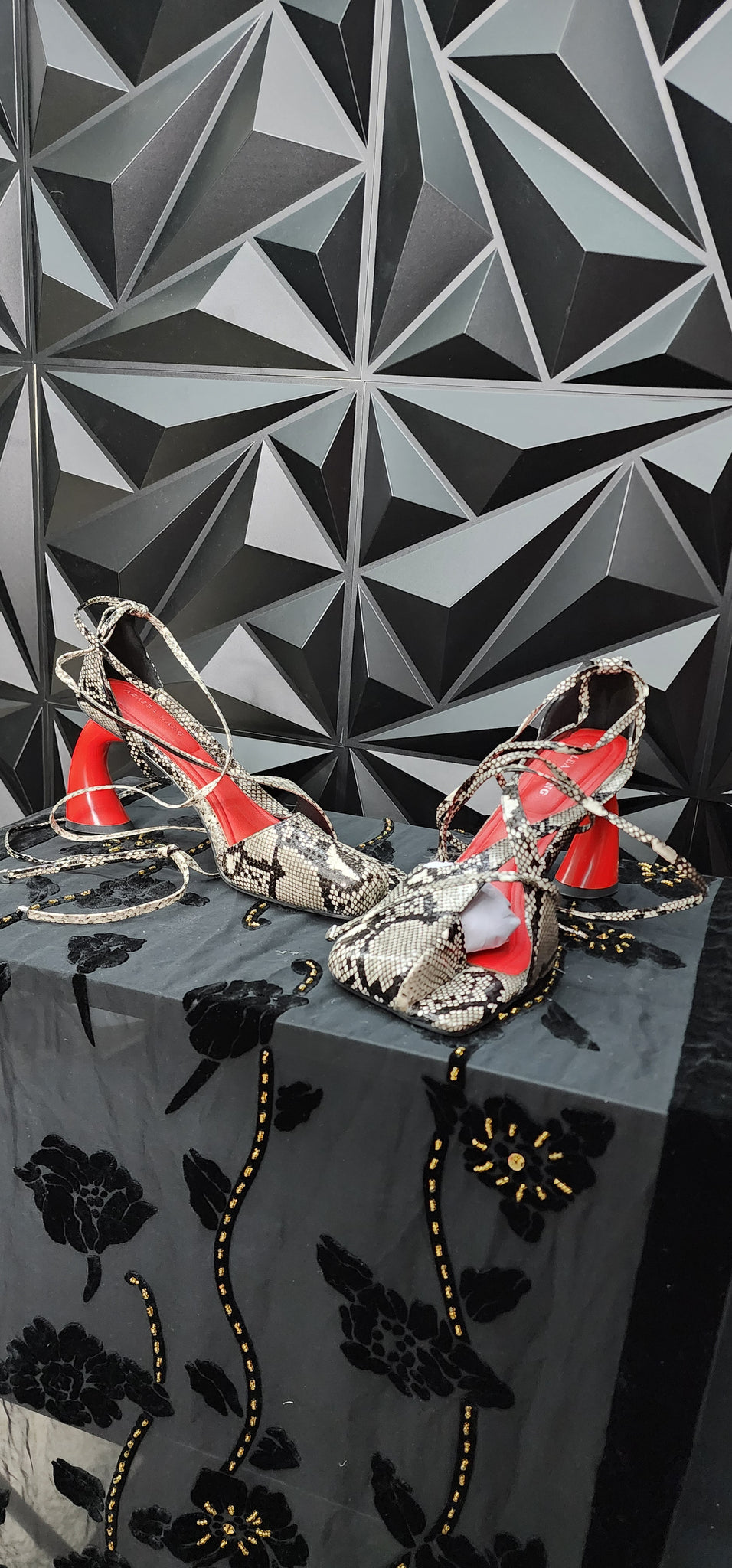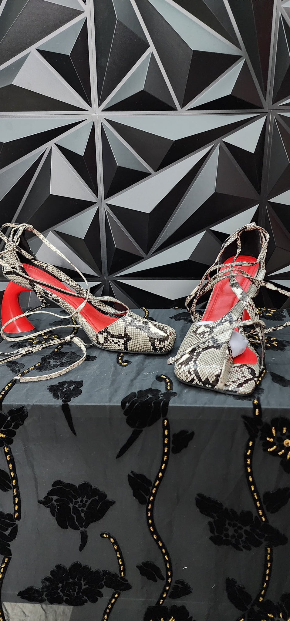 New Azalea Wang reptile print big toe sandals. Big toe out. 3 inch heels.