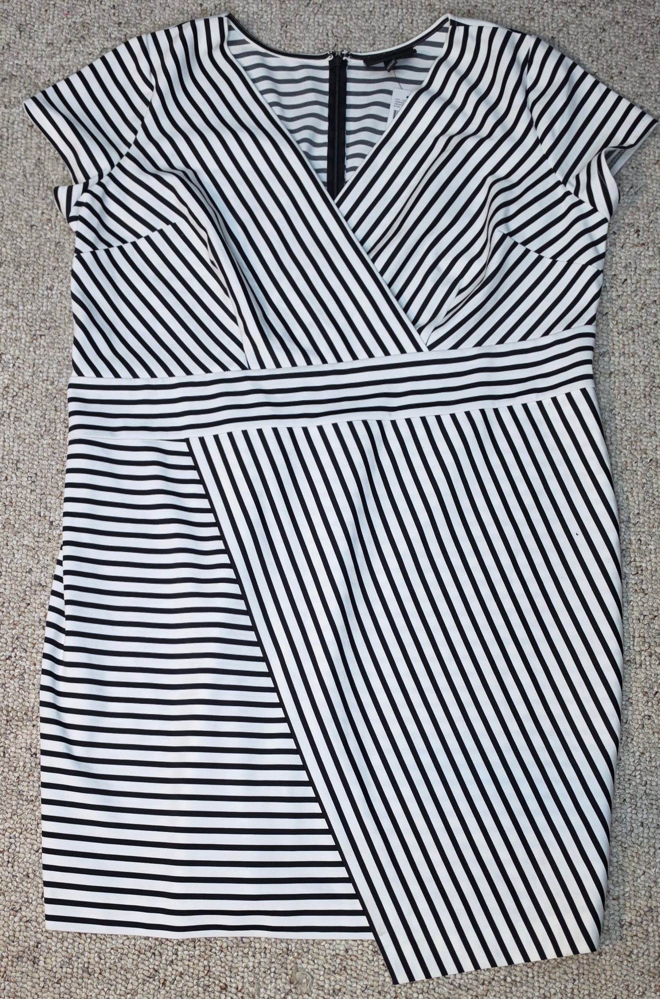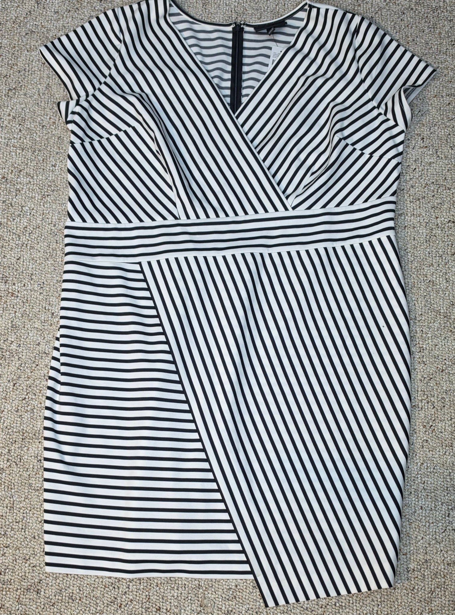NEW WITH TAGS LANE BRYANT STRIPE DRESS. FAUX WRAP IN THE FRONT. DOES HAVE SOME STRETCH. SIZE 22