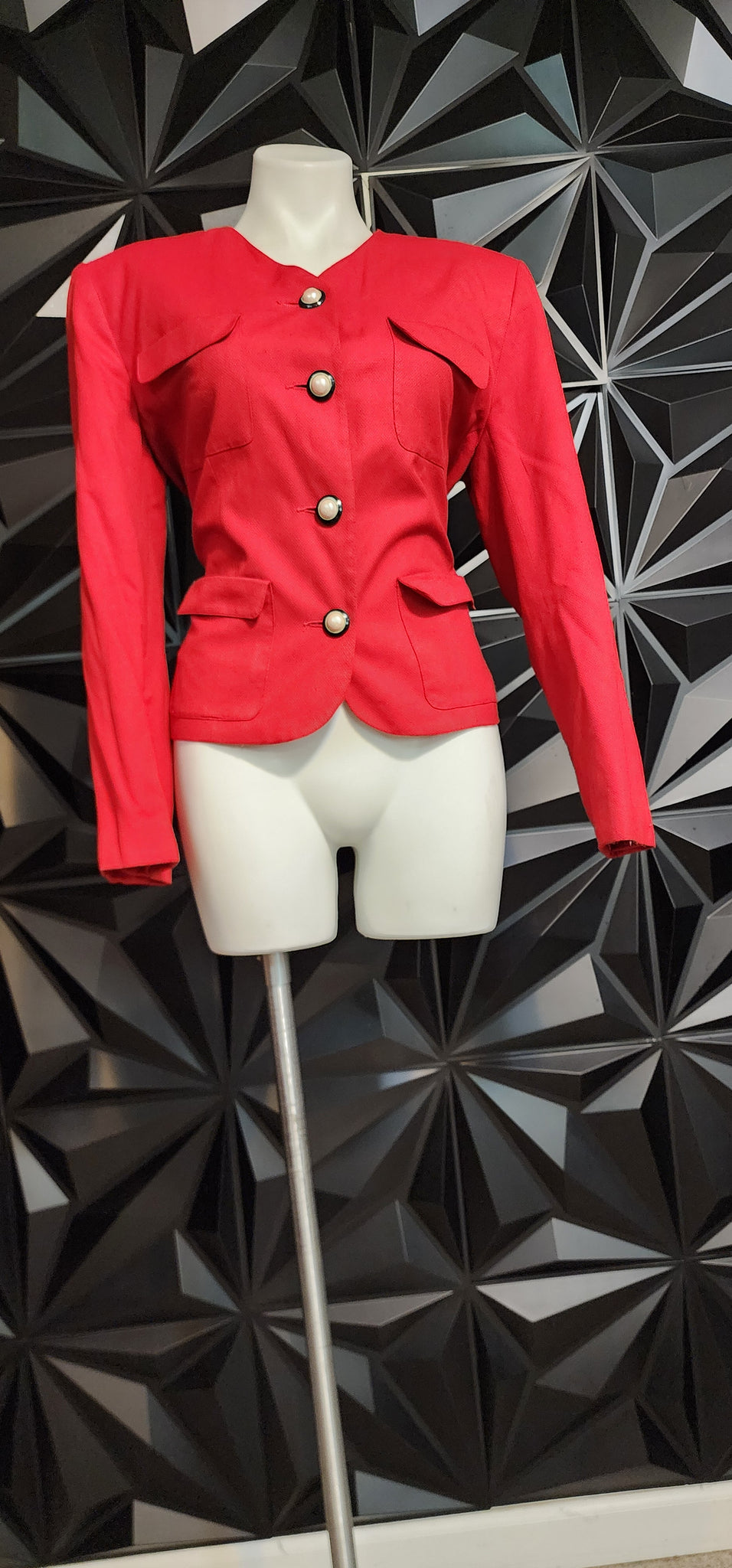 SK & Company red blazer. Button down the front. Tagged a size 12, best fitting a size 10. Front pockets.