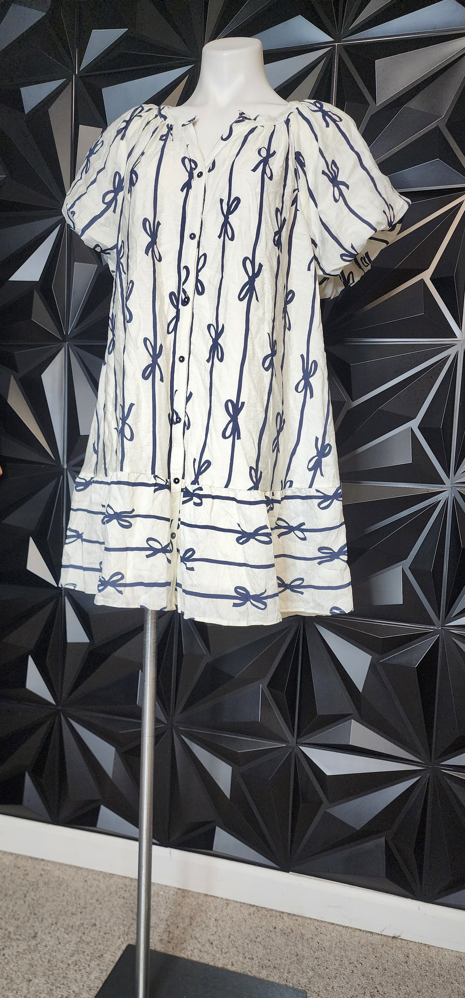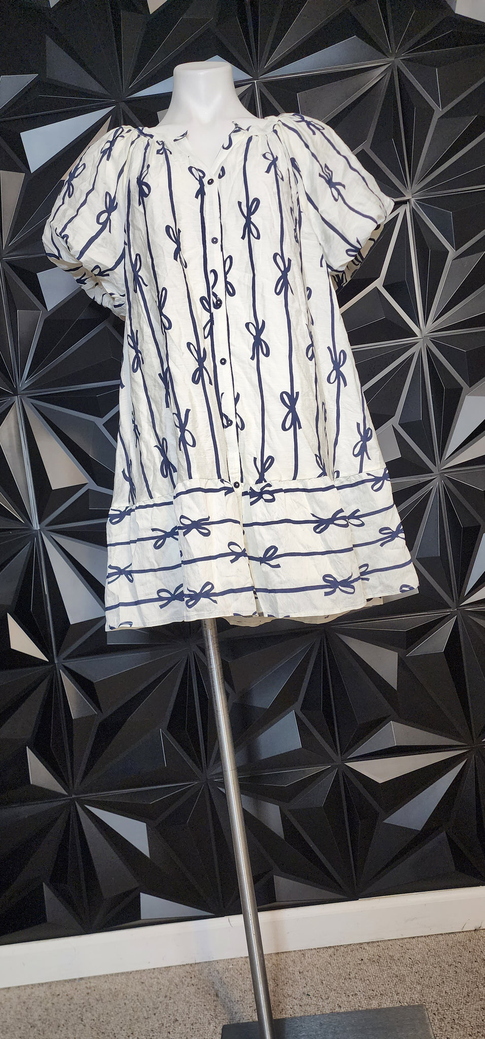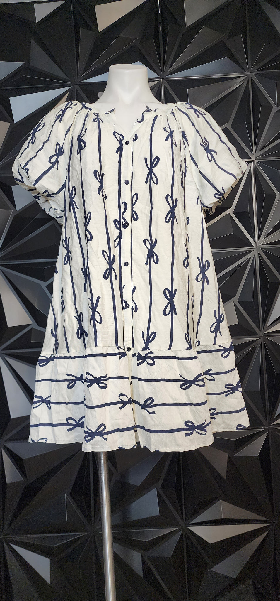 Umgee bow baby doll dress. This dress buttons down the front. Its is tagged a size medium fitting up to a size large (10). Balloon arms